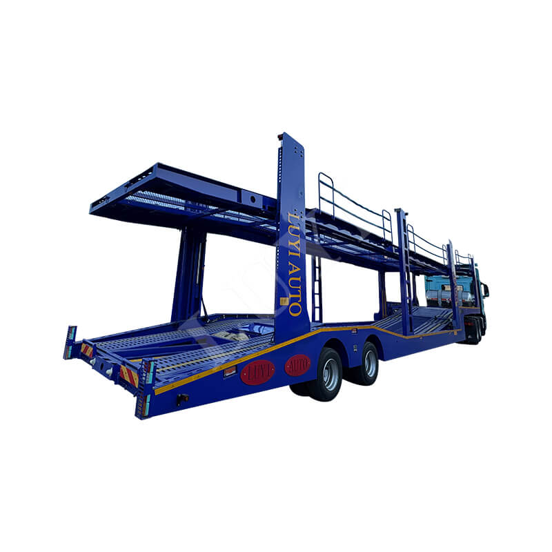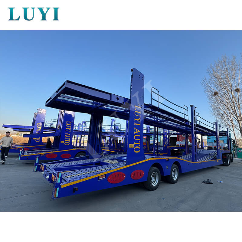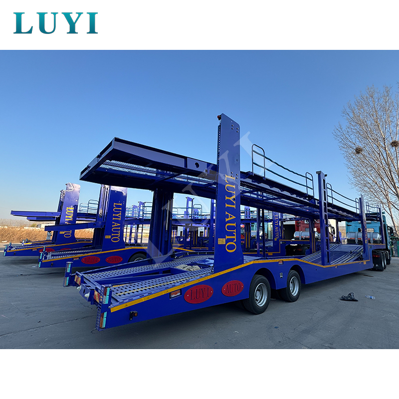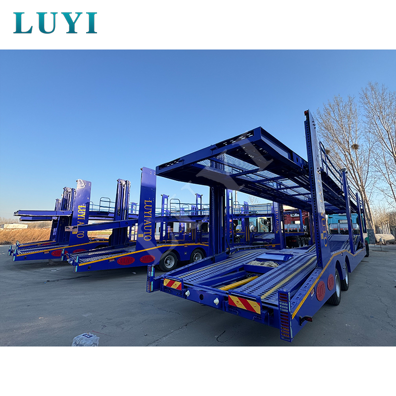 Dwuosiowa naczepa do transportu pojazdów LUYI 17m, zdolna do przewożenia 8 pojazdów, pochodzi z prowincji Shandong w Chinach. Jest to naczepa zaprojektowana specjalnie do transportu wielu samochodów, odpowiednia do scenariuszy z przyczepą ciężarową i zapewniająca wydajne rozwiązanie dla branży logistyki motoryzacyjnej.