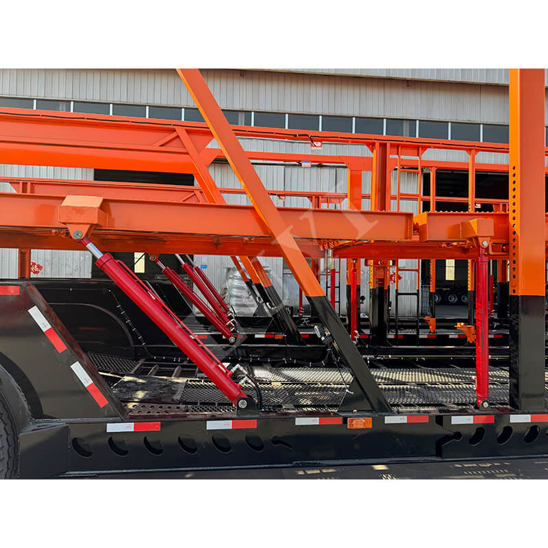 Naczepa do transportu pojazdów 2-osiowa z 8 miejscami postojowymi. Nadwozie wykonane jest ze stali o wysokiej wytrzymałości, o stabilnej konstrukcji nośnej i wyposażone jest w hydrauliczny system podnoszenia, który pozwala elastycznie regulować wysokość miejsc parkingowych, odpowiednich do załadunku różnych modeli. Może efektywnie transportować 8 pojazdów jednocześnie, pomagając branży logistyki samochodowej poprawić efektywność transportu.