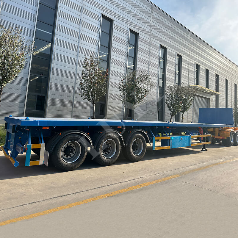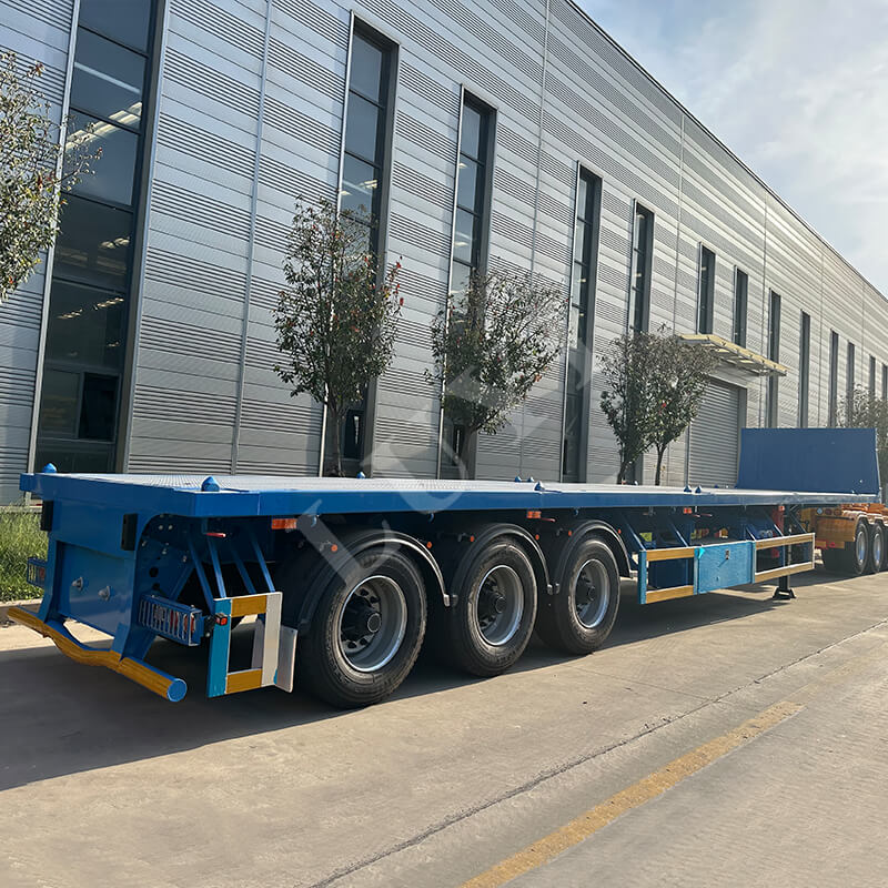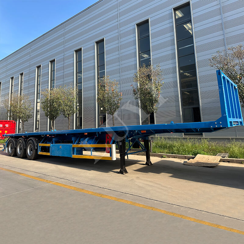 Zalety użytkowe: Ma dużą nośność 40 ton, umożliwiając wydajny transport ciężkich towarów, takich jak minerały, materiały budowlane i sprzęt mechaniczny. Płaska konstrukcja ułatwia podnoszenie i mocowanie towarów, spełnia potrzeby transportowe różnych rodzajów towarów i jest zgodna ze standardami zgodności z przepisami dotyczącymi transportu towarowego w większości regionów.