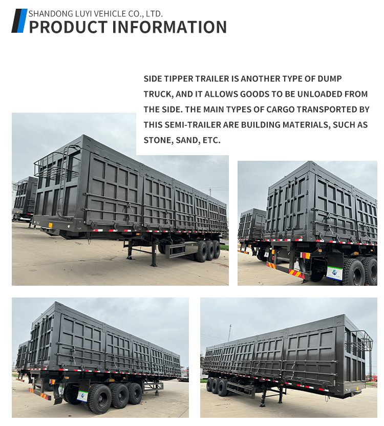 Ta 3-osiowa naczepa wywrotka boczna o nośności 40 ton firmy LUYI to wysokowydajne rozwiązanie do transportu ciężkiego. Pochodzi z Shandong w Chinach i ma zupełnie nową konstrukcję ze stali najwyższej jakości, zapewniającej trwałość i odporność na trudne warunki transportu.