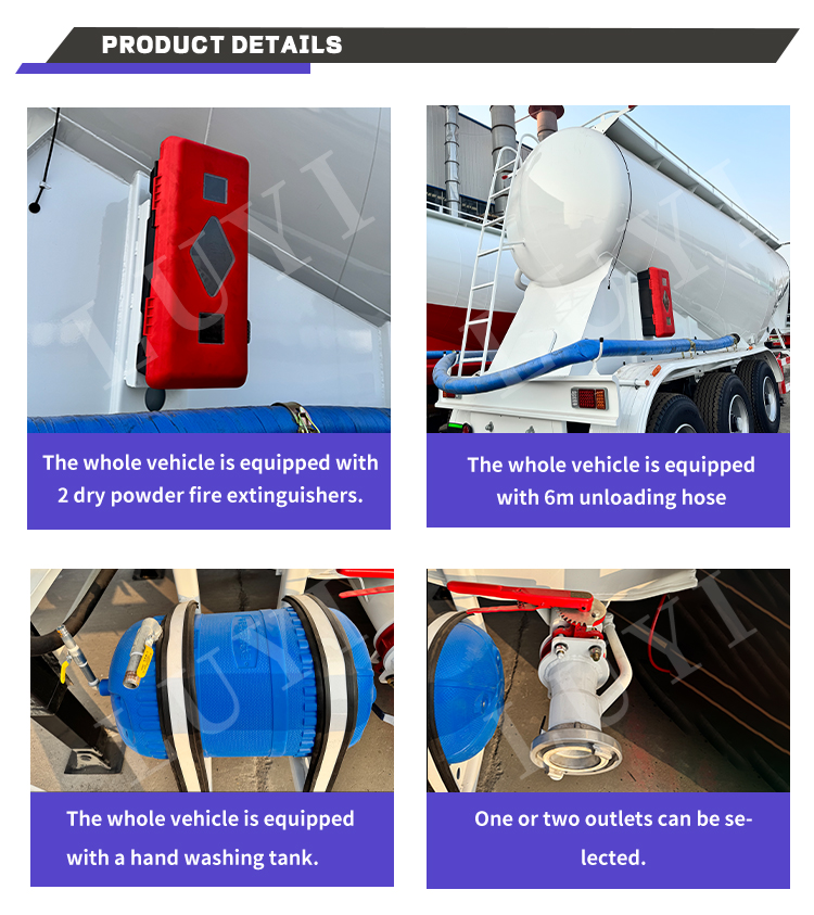 3-osiowa naczepa cysterna na proszek marki LUYI o pojemności 30 metrów sześciennych, pochodząca z wysokiej jakości bazy produkcyjnej w Shandong w Chinach, jest dostosowana do scenariuszy transportu suchej mąki luzem. Cały pojazd wykonany jest ze stali węglowej o wysokiej wytrzymałości, a belka główna ze stali standardowej Q345B/ST52-3, która łączy w sobie trwałość i stabilność nośną. Naukowy projekt wielkości 12000 mm * 2500 mm * 3980 mm jest odpowiedni dla różnych scenariuszy transportu.