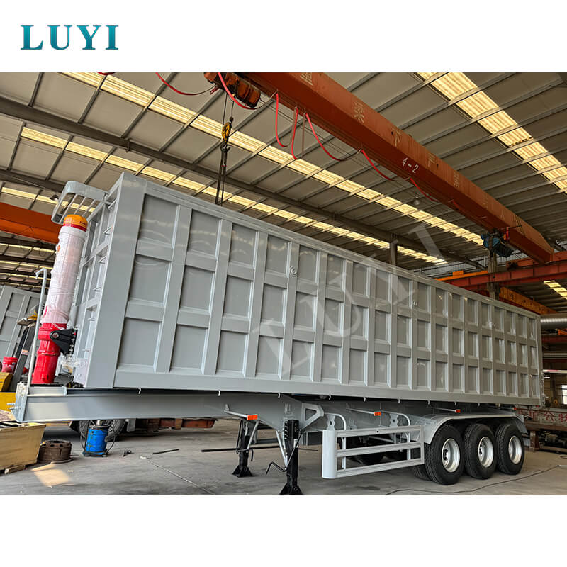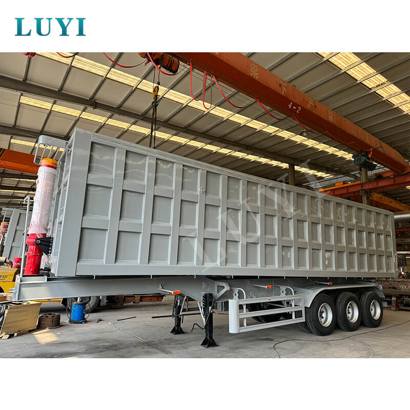 Ta 3-osiowa naczepa z wywrotem tylnym i siłownikiem hydraulicznym o udźwigu 50–60 ton firmy LUYI to wytrzymałe rozwiązanie do transportu piasku i żwiru. Pochodzi z Shandong w Chinach i jest zbudowany z wysokiej jakości stali, a jego maksymalna ładowność wynosi 80 ton, dzięki czemu bez trudu radzi sobie z ciężkimi ładunkami.
