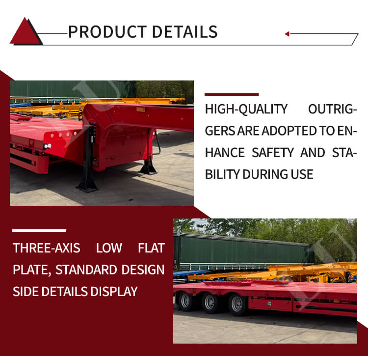 Zbudowana z wysokiej jakości stali, przyczepa ma wymiary 17000×2500mm i maksymalną ładowność 80T, z łatwością radzi sobie z transportem ciężkiego sprzętu. Oferuje elastyczne konfiguracje osi (2/3/4 osie), aby dostosować się do różnych wymagań dotyczących obciążenia, w połączeniu z oponami 12R22.5. Opcjonalnie dostępne są zarówno układy zawieszenia mechanicznego, jak i pneumatycznego, zapewniające stabilną jazdę i skuteczną ochronę ładunku podczas transportu.