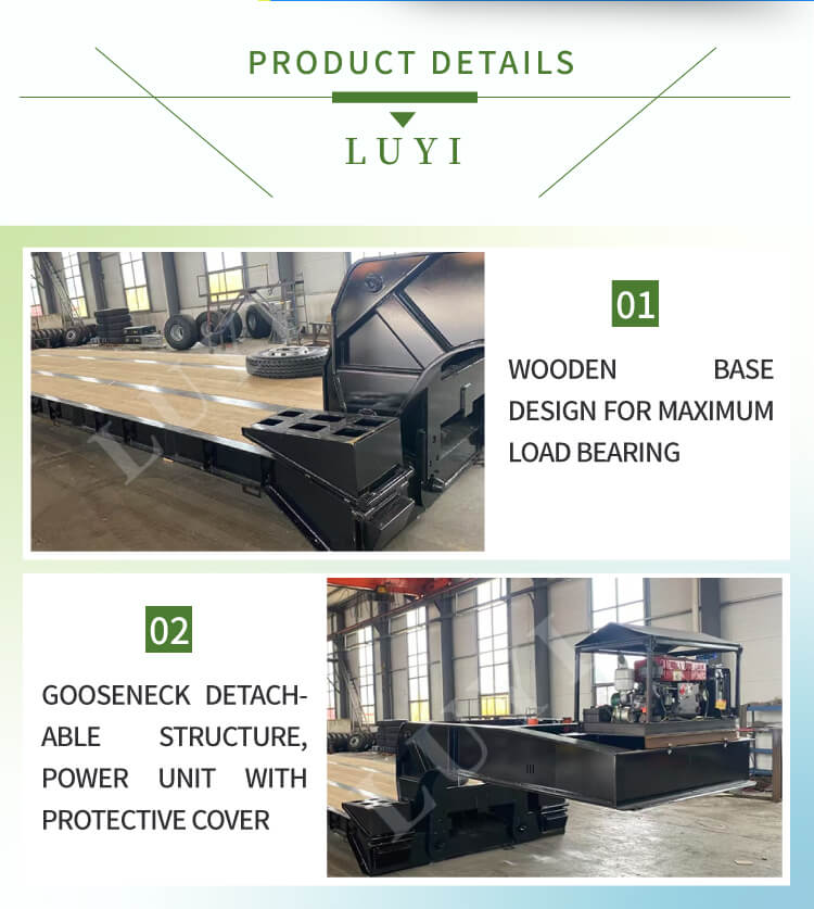 Wyprodukowana przez Luyi Vehicle w Shandong w Chinach, 3-osiowa naczepa niskopodwoziowa z odłączaną gęsią szyją to niezawodne rozwiązanie do transportu ciężkiego o maksymalnej ładowności 100 ton. Ma wymiary 15000 × 3000 × 1800 mm, doskonale pasując do potrzeb zastosowań w przyczepach ciężarówek.