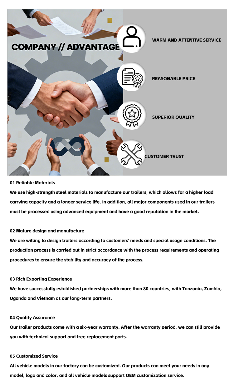 Kolor korpusu można dostosować do różnych potrzeb użytkowania i wymagań dotyczących wizerunku marki. Jako profesjonalny producent naczep, LUYI przestrzega ścisłej kontroli jakości i praktycznego projektowania produktów, zapewniając wydajne i bezpieczne rozwiązania dla wszystkich rodzajów transportu ciężkiego. To godny zaufania partner dla Twojego biznesu handlu zagranicznego!