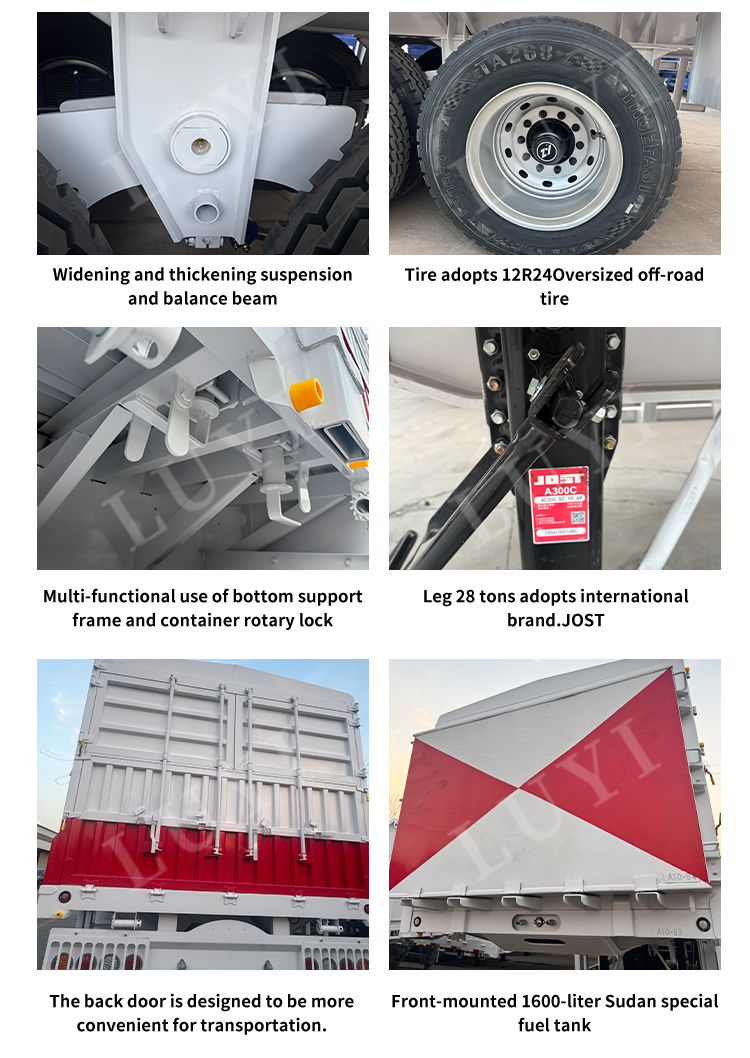 Przyczepa jest wyposażona w podwozie Jost o udźwigu 28 ton i układ przeciwblokujący ABS zapewniający większe bezpieczeństwo. Posiada wiele certyfikatów, w tym ECE, GCC, CE, DOT i ISO/TS16949, spełniając światowe standardy jakości. Nie jest samozrzucający i obsługuje niestandardowe opcje kolorów. Idealna do transportu węgla, zboża, rud i towarów rolnych, ta zupełnie nowa naczepa jest dostosowana do trudnych warunków drogowych w Azji Środkowej i Afryce, zapewniając niezawodne działanie flot logistycznych, kopalń i gospodarstw rolnych.