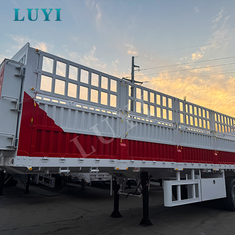 3-osiowa naczepa LUYI ze ścianą boczną to wytrzymały pojazd transportowy stworzony do przewozu ładunków masowych, dostępny w wersjach o udźwigu 50T, 60T i 80T. Ma wymiary 1550025504000 mm, ma solidną stalową obudowę i jest dostępny z dwiema opcjami zawieszenia: zawieszenie mechaniczne zapewniające ekonomiczną trwałość i zawieszenie pneumatyczne zapewniające płynniejszą jazdę po nierównych drogach. Wyposażony w 12 szt. opon 12r22.5 i najwyższej klasy osie firm Feichi, BPW czy Fuwa, zapewnia stabilne osiągi nawet przy maksymalnym obciążeniu.