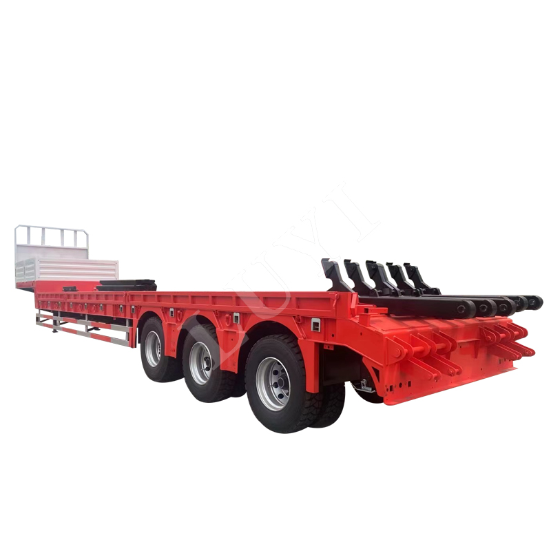 Luyi 3-Axle Hydraulic Gooseneck 50-Ton Lowboy Semi-Trailer, pochodząca z prowincji Shandong w Chinach, to przyczepa ciężarowa specjalizująca się w transporcie ciężkiego sprzętu. Korpus wykonany jest z wysokiej jakości stali i wykończony metodą malowania poliuretanowego, co zapewnia odporność na korozję, trwałość i wysoką jakość wyglądu. Kolor można dostosować do potrzeb, aby spełnić spersonalizowane wymagania.