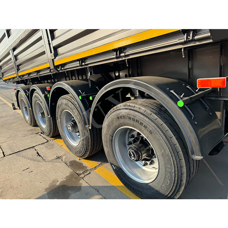 Wyposażony w 4 osie i opony w wielu specyfikacjach (opcjonalnie 12R22.5/12.00R20/11R22.5), współpracuje ze stabilnym zawieszeniem mechanicznym i resorami piórowymi 90×13×10 mm, zapewniającymi stabilność i bezpieczeństwo podczas jazdy z dużym obciążeniem. Jest wyposażony w standardowe podwozie JOST o udźwigu 28 ton, które zapewnia solidne i niezawodne podparcie, aby spełnić wymagania dotyczące stabilności podczas załadunku i rozładunku. Klienci mogą dostosować kolor do indywidualnych potrzeb, dostosowując się do różnych scenariuszy zastosowań i spersonalizowanych preferencji, a także zapewniając rozwiązanie sprzętowe o dużej nośności i trwałości do transportu ciężkich ładunków, takich jak transport piasku, żwiru i węgla.