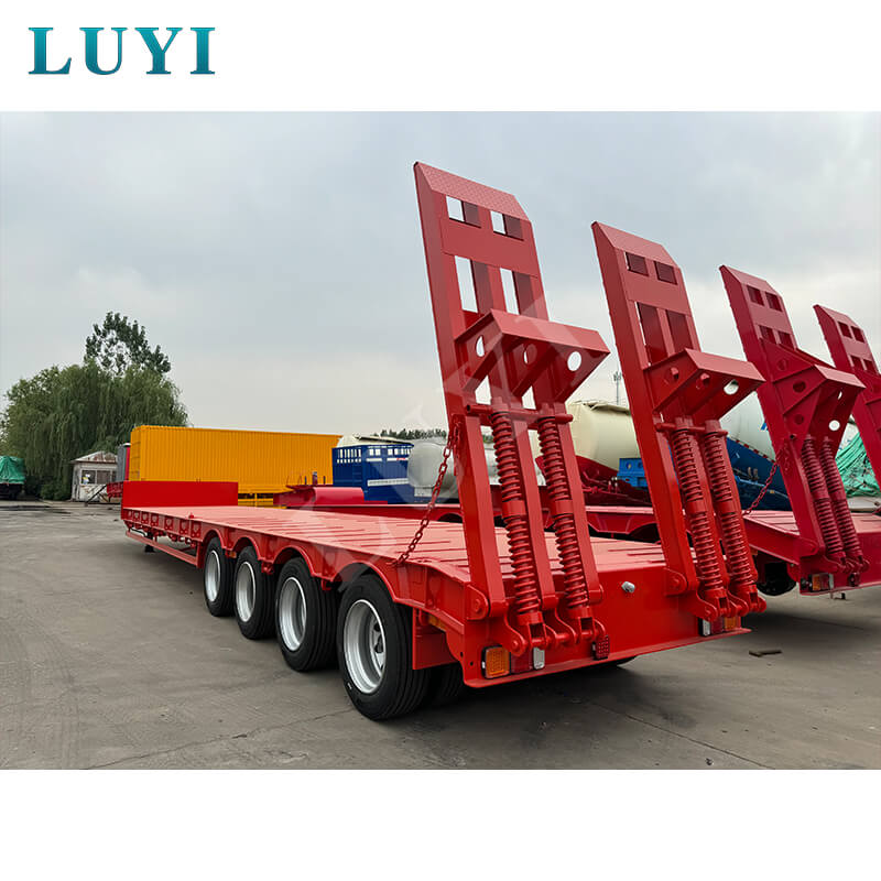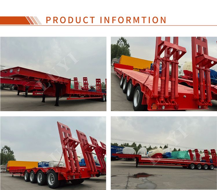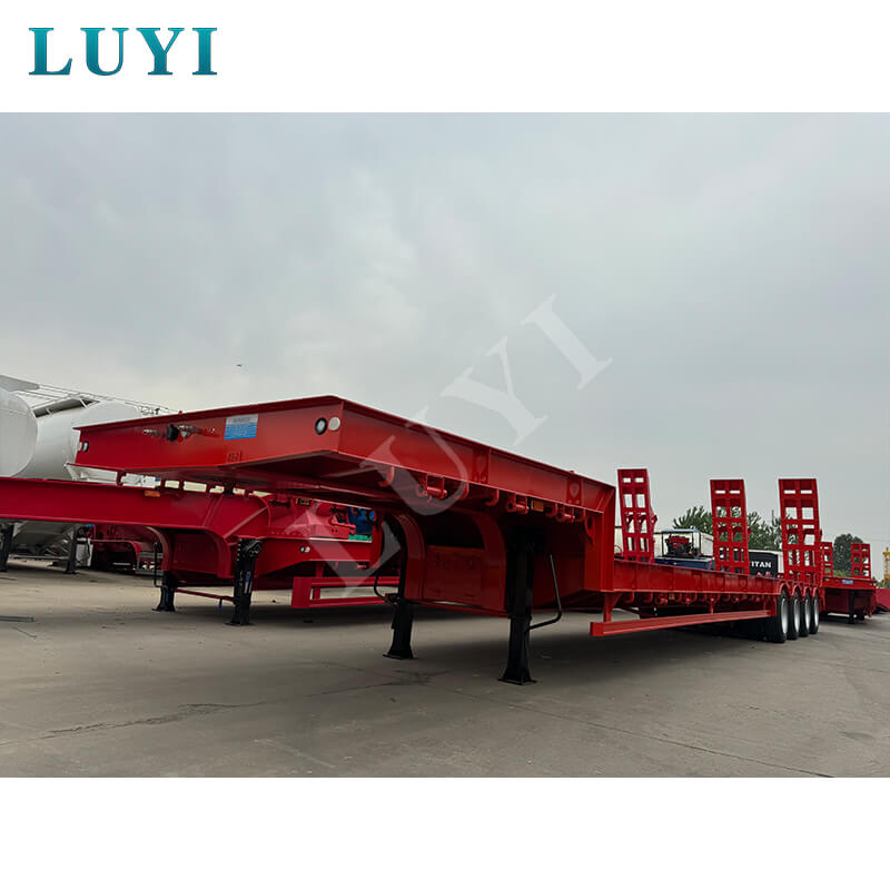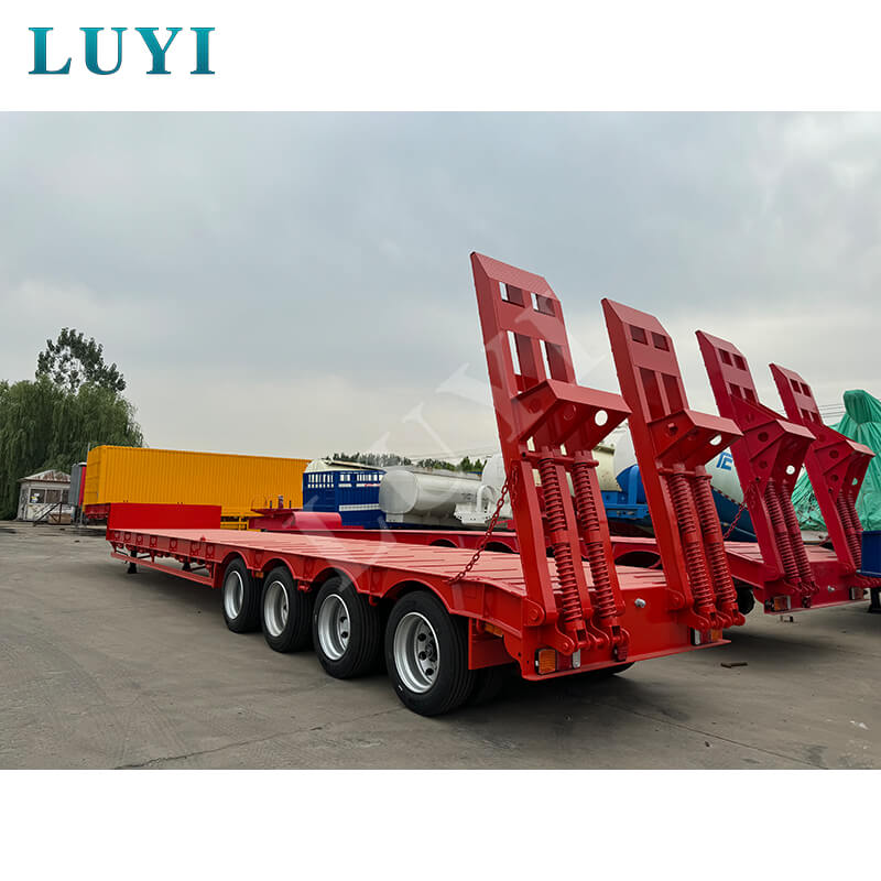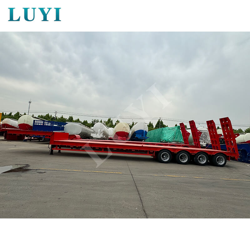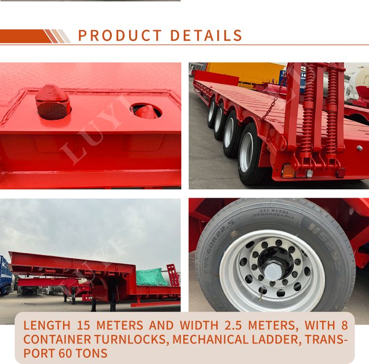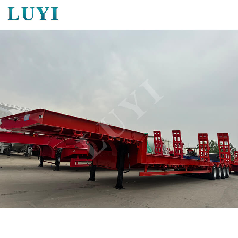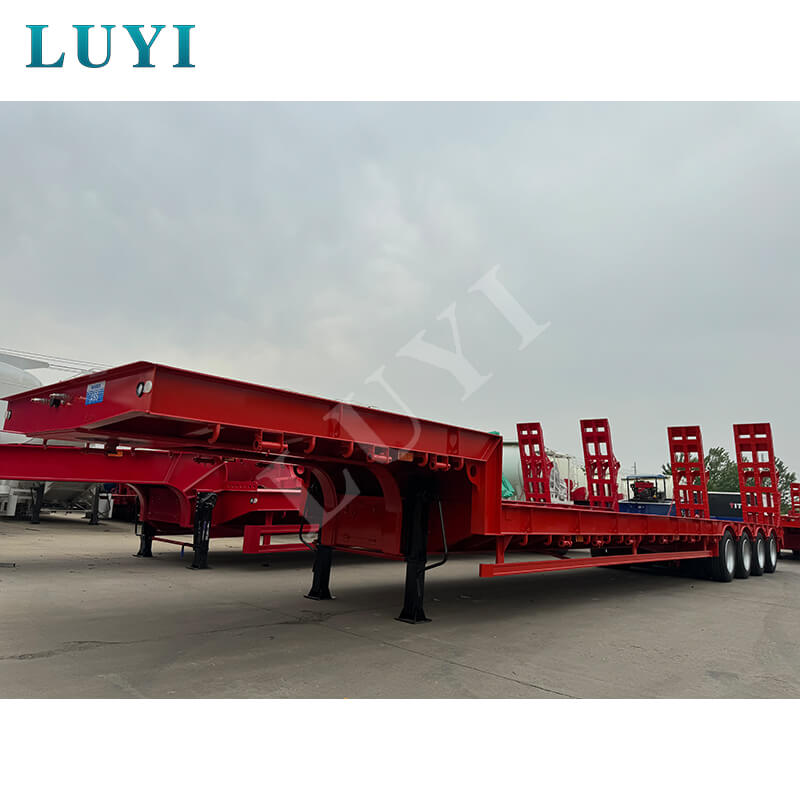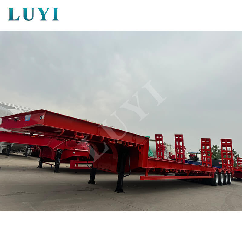 Luyi 4-Axle 60-Ton Gooseneck Lowboy Semi-Trailer, produkowana w prowincji Shandong w Chinach, to przyczepa samochodowa przeznaczona do transportu ciężkich ładunków. Nadwozie przyczepy wykonane jest z wysokiej jakości stali, charakteryzującej się solidną i trwałą konstrukcją. Jego maksymalna ładowność nie tylko przekracza 30 000 kg, ale także sięga 100 ton, dzięki czemu z łatwością przewozi różne ciężkie towary i spełnia potrzeby transportu o dużej intensywności.