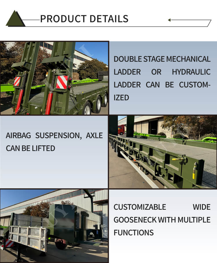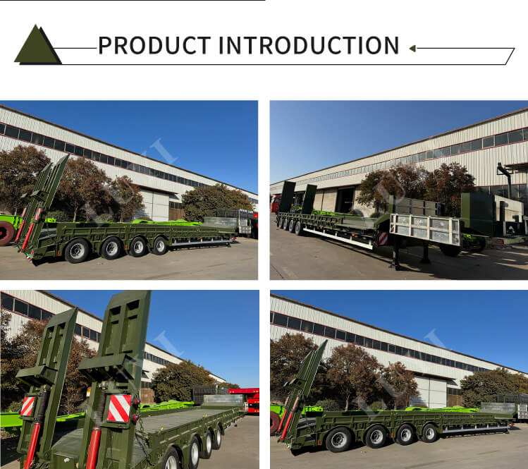 4-osiowa naczepa niskopodwoziowa LUYI o udźwigu 60 ton i gęsiej szyi, to zupełnie nowy produkt z Shandong w Chinach, to profesjonalna przyczepa samochodowa przeznaczona do transportu ciężkich ładunków. Jako główny materiał wykorzystuje wysokiej jakości stal, o standardowych wymiarach 13 m × 3 m × 2,5 m i maksymalnej ładowności 60 ton, aby sprostać potrzebom transportu ciężkiego.