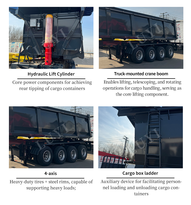 Ta naczepa wywrotka tylno-wywrotna LUYI jest naczepą transportową do ciężkich ładunków pochodzącą z Shandong w Chinach, specjalnie zaprojektowaną do holowania ciężkich samochodów ciężarowych w górnictwie, infrastrukturze i transporcie ładunków masowych. Wykonana z wysokiej jakości litej stali przyczepa charakteryzuje się doskonałą nośnością przy maksymalnej nośności 70 ton i masie własnej zaledwie 9 ton, co zapewnia optymalną równowagę pomiędzy dużym ładunkiem a lekką nadwoziem. Jego całkowite wymiary to 9000 mm × 2550 mm × 3700 mm, z regulowaną wysokością ściany bocznej w zakresie od 400 mm do 1200 mm, co pozwala na elastyczne umieszczanie ładunku.