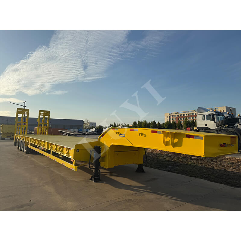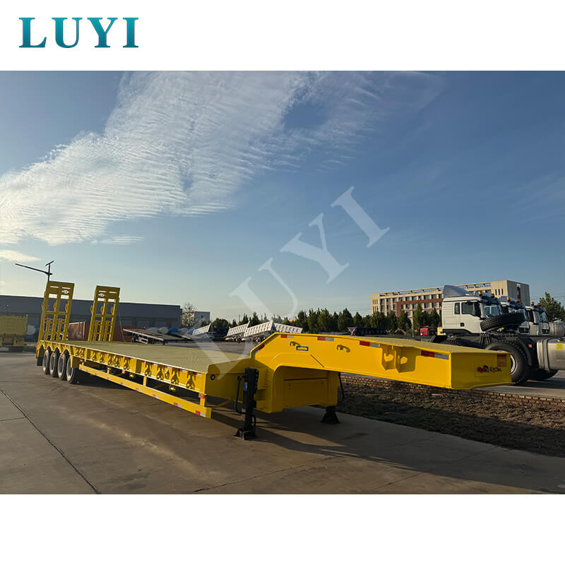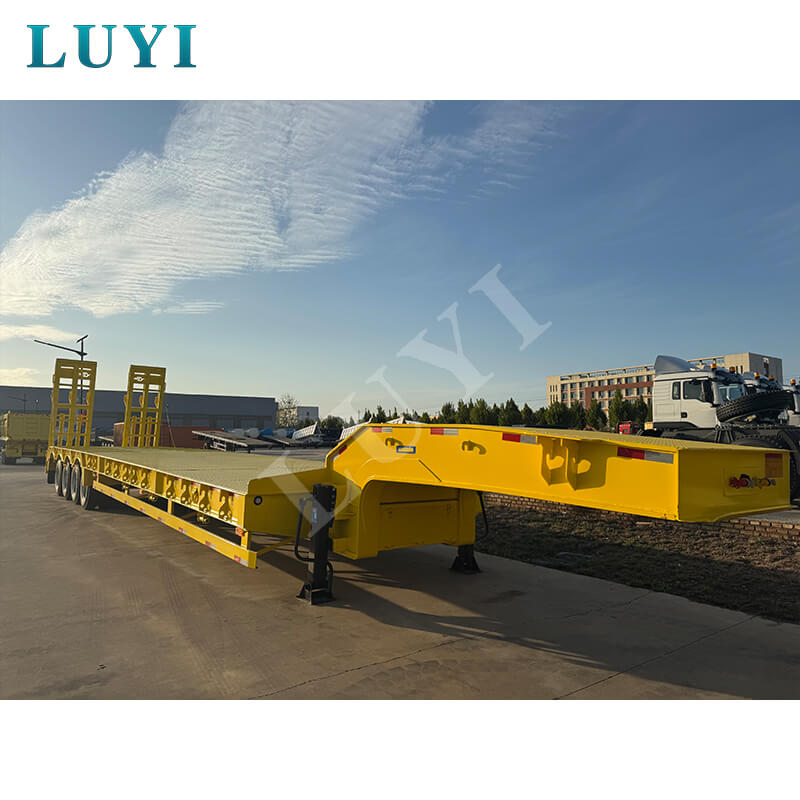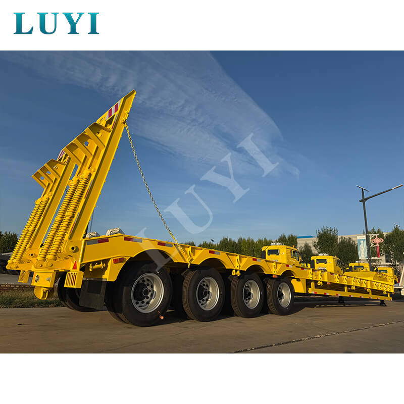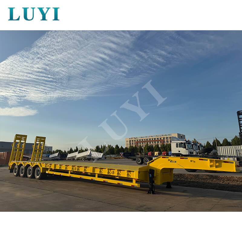 4-osiowa naczepa Luyi o nośności 80 ton i gęsiej szyi, pochodząca z prowincji Shandong w Chinach, to zupełnie nowa profesjonalna naczepa. Dzięki maksymalnemu efektywnemu obciążeniu przekraczającemu 30 000 kg nadaje się do scenariuszy z przyczepą samochodową i może wydajnie przewozić ciężkie ładunki.