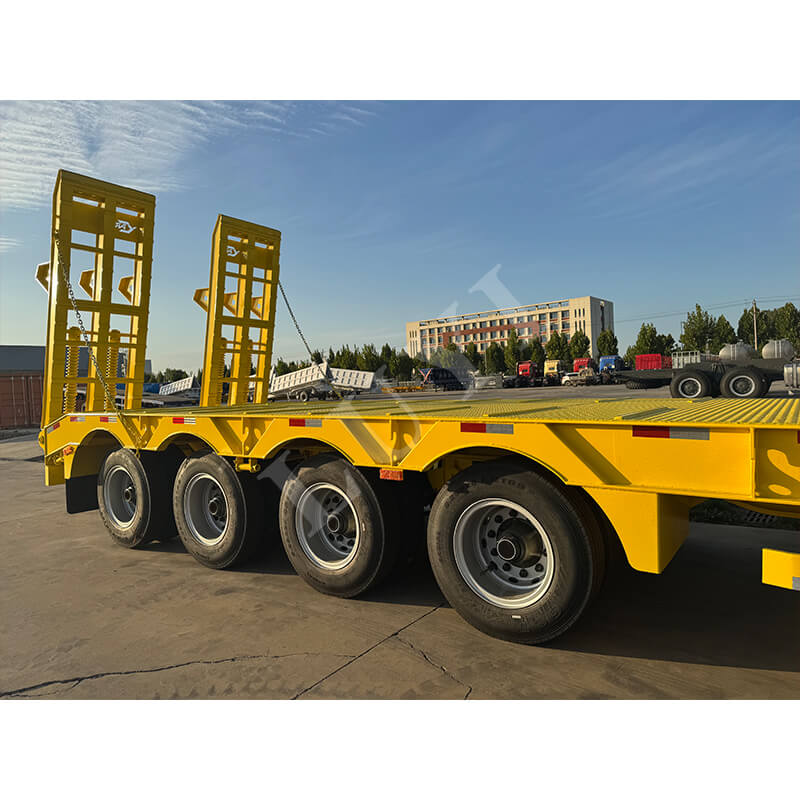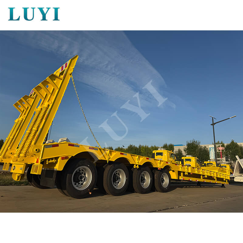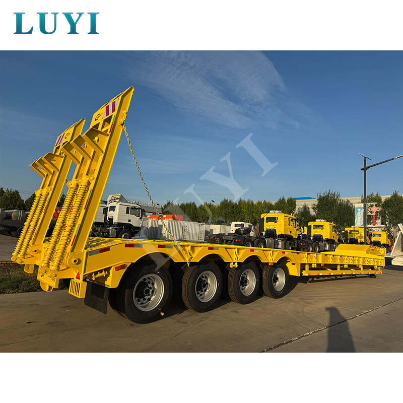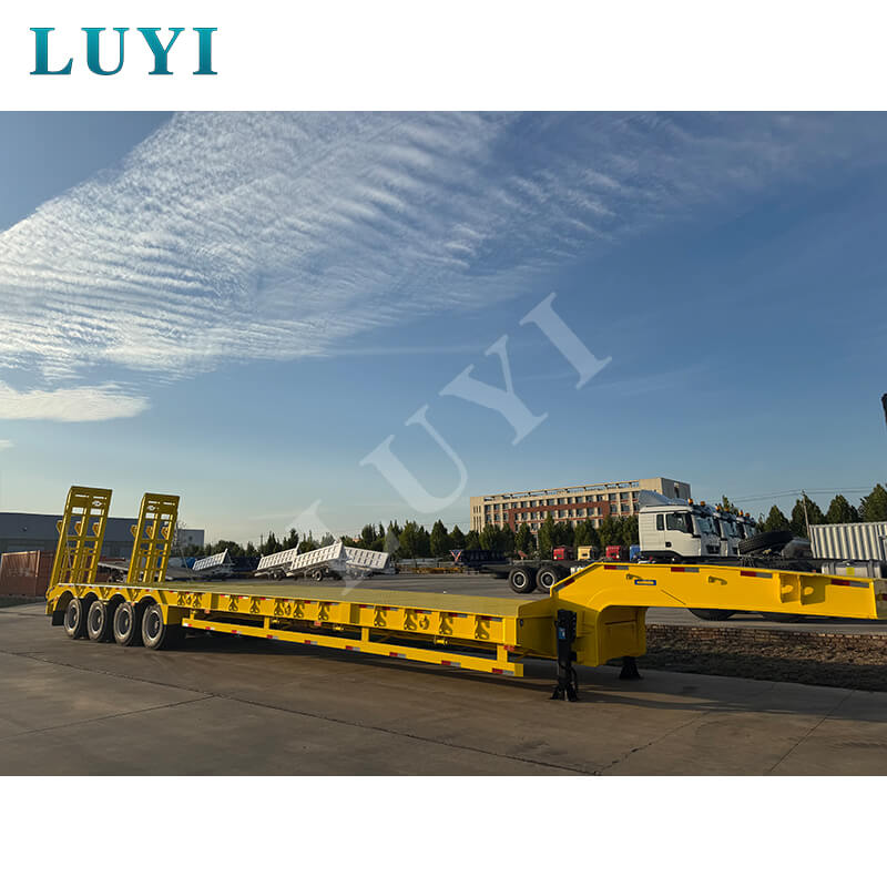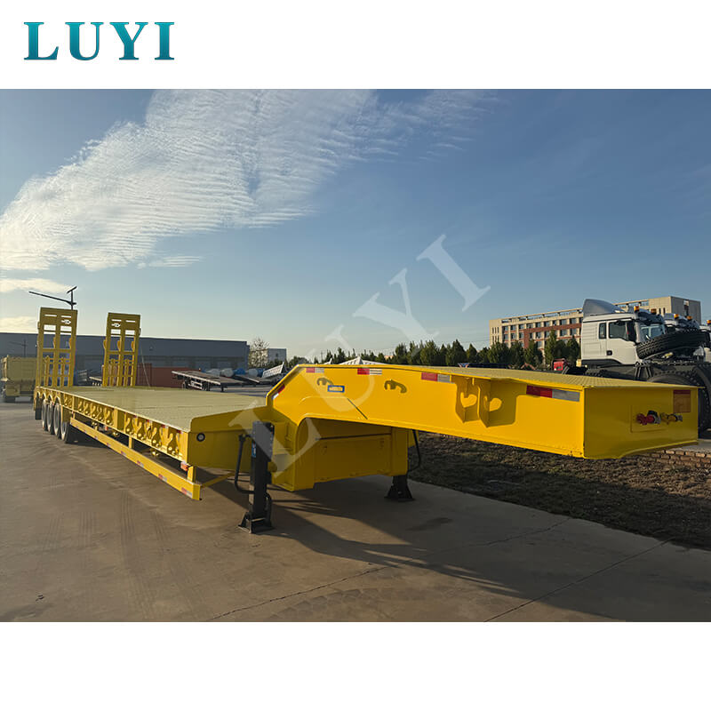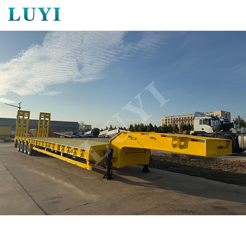 4-osiowa naczepa Luyi o nośności 80 ton i gęsiej szyi, pochodząca z prowincji Shandong w Chinach, to zupełnie nowa profesjonalna naczepa. Dzięki maksymalnemu efektywnemu obciążeniu przekraczającemu 30 000 kg nadaje się do scenariuszy z przyczepą samochodową i może wydajnie przewozić ciężkie ładunki.