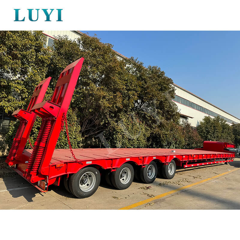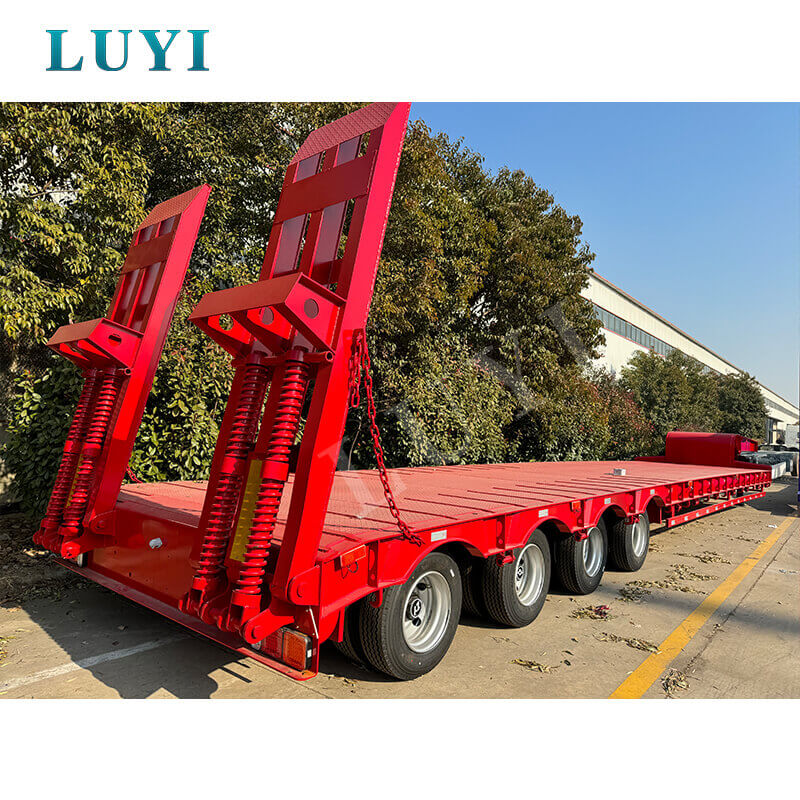 4-osiowa naczepa niskopodwoziowa na gęsiej szyi, zaprojektowana specjalnie do transportu koparek i innego ciężkiego sprzętu inżynieryjnego w infrastrukturze, górnictwie i innych scenariuszach. Przyjmuje konstrukcję typu „gęsia szyja” + niskopodłogowa, aby zmniejszyć wysokość platformy ładunkowej, dostosowując się do ultraszerokiego i bardzo wysokiego sprzętu. Dzięki 4-osiowej dużej nośności, wysokiej jakości zawieszeniu osi, ABS i dostosowanej platformie ładunkowej, zapewnia wydajne i bezpieczne rozwiązanie transportowe.