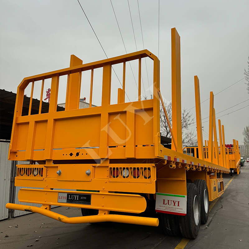 2-osiowa 40-tonowa przyczepa kolumnowa LUYI z platformą jest przystosowana do transportu drewna i oferuje szerokie możliwości dostosowywania. Dostosuj wysokość kredensu (dostępne 30–80 cm), aby dopasować go do kłód, tarcicy lub innych produktów drewnianych, i wybierz między pokładem stalowym lub pokrytym antypoślizgiem, aby zapewnić lepszą przyczepność.