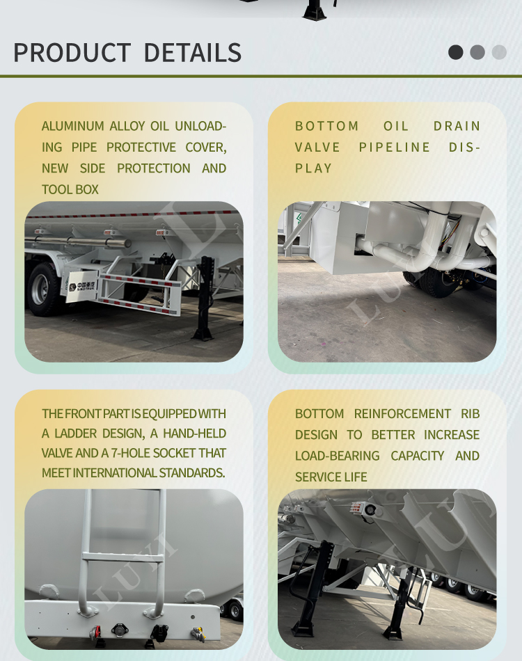 Specjalne naczepy marki LUYI do transportu paliw są w pełni wyposażone w lekkie i odporne na korozję zbiorniki paliwa ze stopu aluminium i muszą być używane w połączeniu z ciągnikiem siodłowym. Modele te obejmują szeroki zakres pojemności od 24 000 do 50 000 litrów i obejmują 3-osiowe wersje standardowe oraz 3-przedziałowe wersje wieloproduktowe o maksymalnej ładowności 32 000 kg. Modele o małej pojemności nadają się do zasilania małych stacji na krótkich dystansach, natomiast modele wieloprzedziałowe o dużej pojemności obsługują transport wielu produktów na duże odległości, w pełni spełniając różnorodne potrzeby w zakresie dystrybucji paliw na stacjach benzynowych, rafineriach i nie tylko.