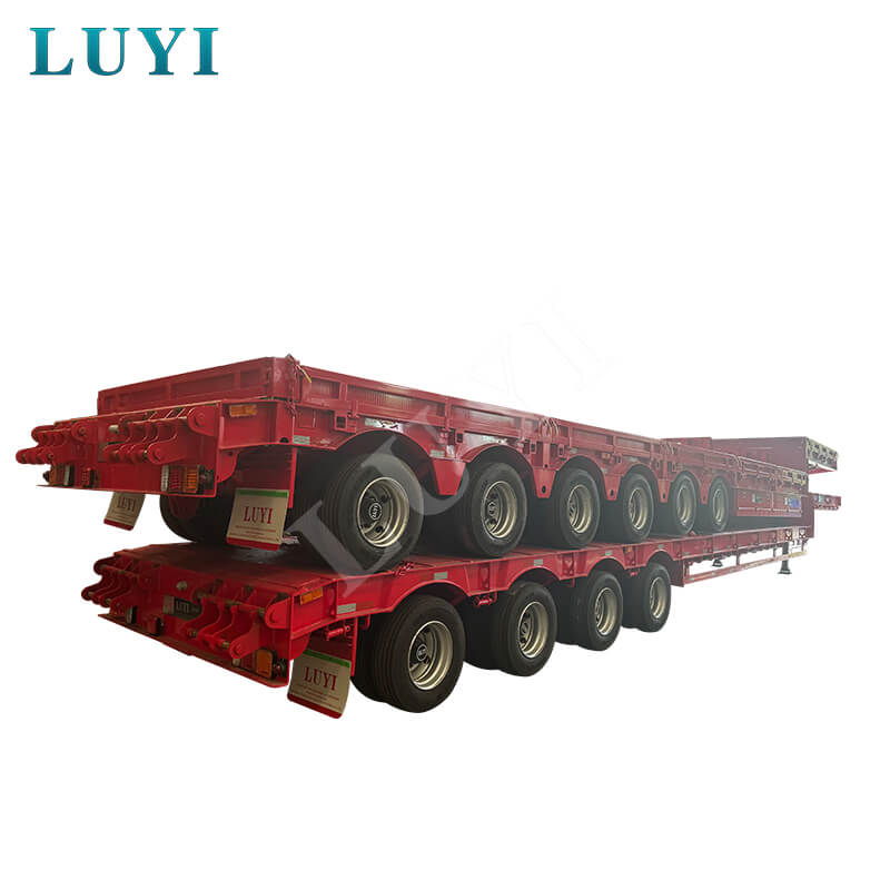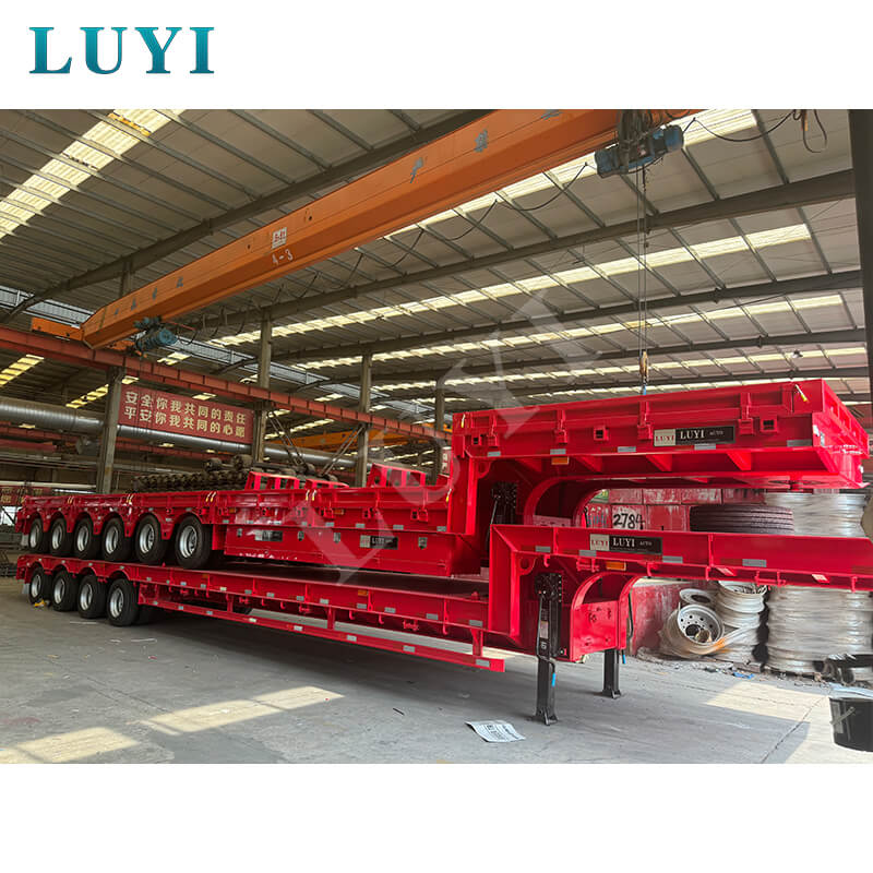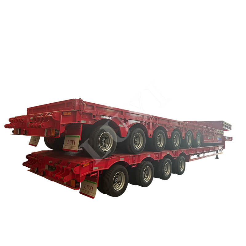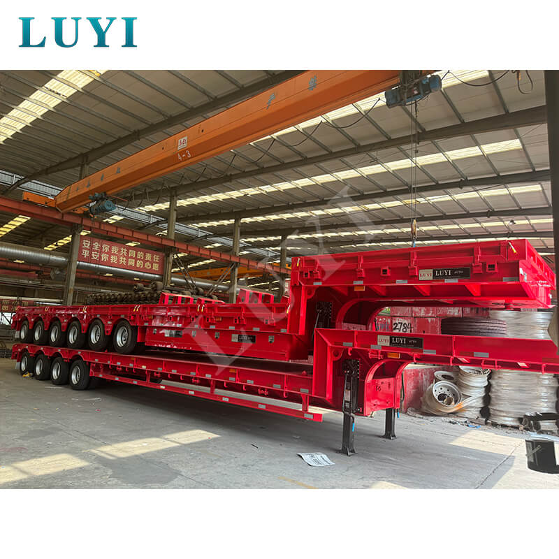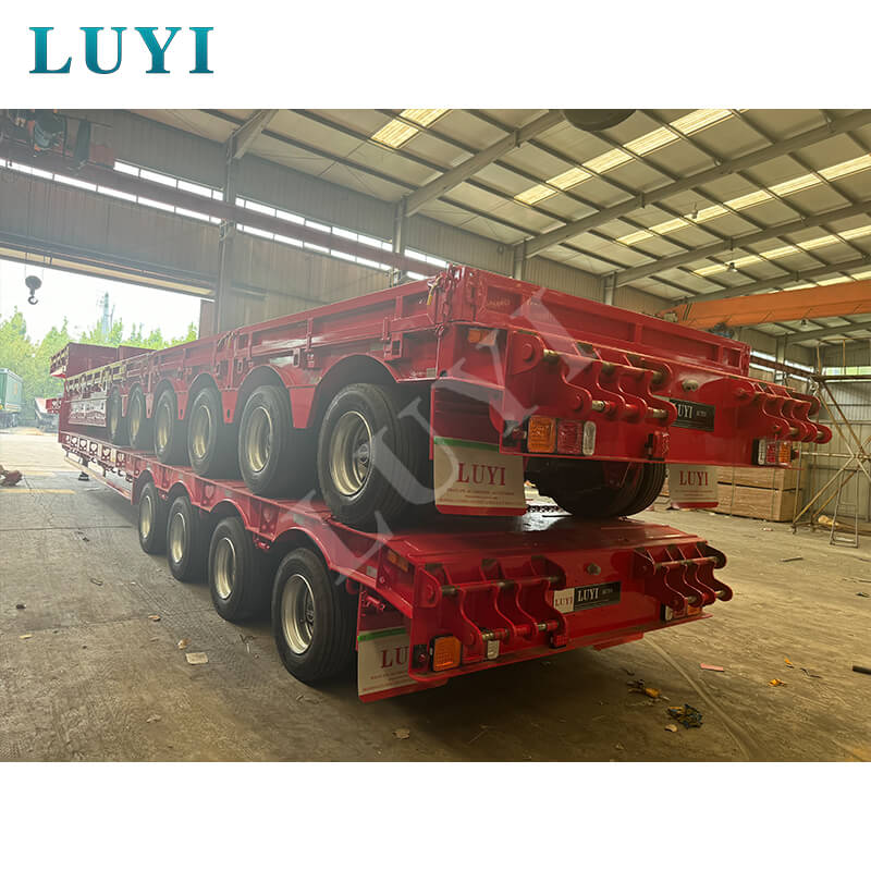 Pochodząca z prowincji Shandong w Chinach, 6-osiowa naczepa niskopodwoziowa Luyi o udźwigu 80-100 ton z chowanym stalowym kontenerem to wysokowydajna przyczepa do samochodów ciężarowych zaprojektowana specjalnie do transportu kontenerów. Wykonany z wysokiej jakości stali, ma wymiary 1300025001350mm i oferuje opcjonalne konfiguracje osi 3/4/5/6 osi, wyposażonych w osie renomowanej marki FUWA. Jego maksymalna ładowność efektywna waha się od 20001 do 25000 kg.