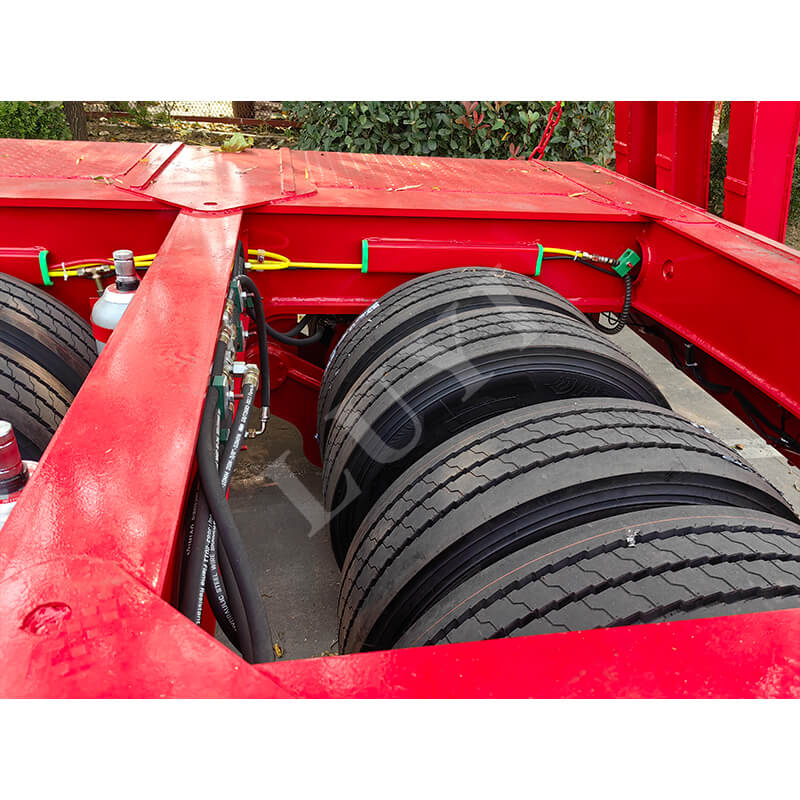 Przyczepa ma wymiary 18 000×2500 mm, a jej płyta robocza ma długość 18 metrów (w tym 5-metrowy odcinek teleskopowy), elastycznie dopasowując się do ładunku o różnej długości. Wyposażony w 22 osie (po 13 ton każda) i 28-tonowe podwozie zapewnia stabilną jazdę i bezpieczne podparcie. Wykorzystuje równomiernie opony 12R22.5, z opcjonalnymi sworzniami królewskimi 50# lub 90# i stałą konstrukcją typu „gęsia szyja”, co równoważy praktyczność i niezawodność, aby sprostać różnorodnym potrzebom transportowym.