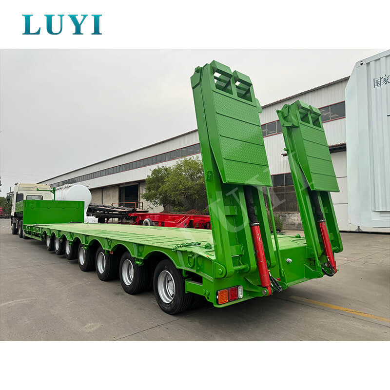 Pochodząca z prowincji Shandong w Chinach, 7-osiowa naczepa Lowboy Luyi Vehicle to profesjonalna naczepa przeznaczona do transportu ciężkich ładunków. Wykonana z wysokiej jakości stali, jej główna belka została wykonana ze stali T700/Q345 o wysokiej wytrzymałości i pokryta farbą poliuretanową, zapewniającą zarówno wytrzymałość, jak i odporność na korozję. Mierzy 1700030001500mm.