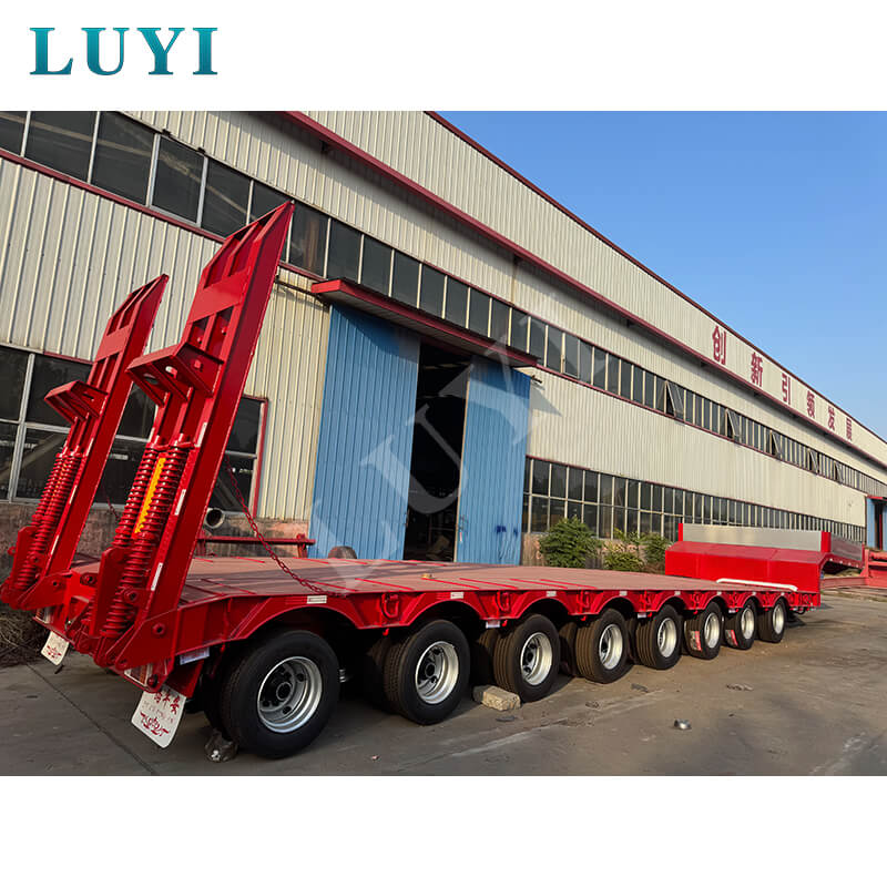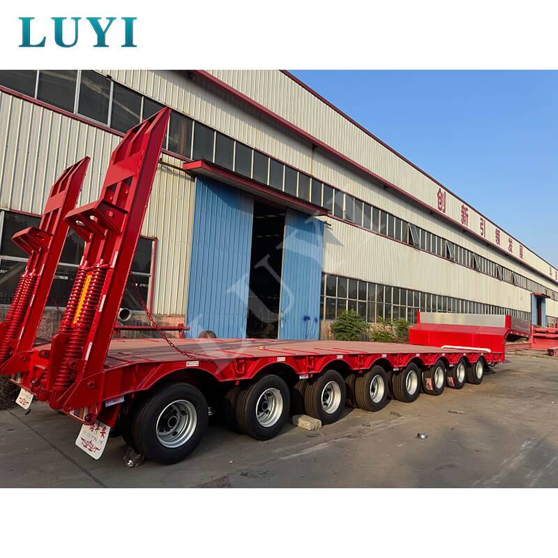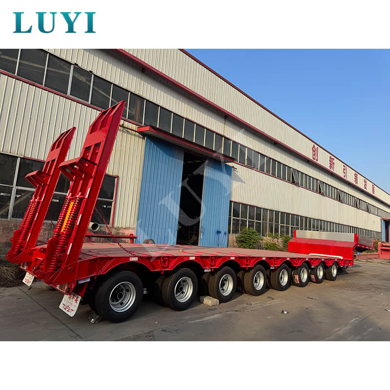 8-osiowa naczepa niskopodwoziowa Luyi o udźwigu 150 ton i udźwigu 40 stóp, pochodząca z prowincji Shandong w Chinach, to wysokiej jakości naczepa zaprojektowana specjalnie do transportu ciężkich ładunków. Wykonany z wysokiej jakości stali, łączy w sobie solidność i trwałość, z maksymalną ładownością efektywną 100 ton i maksymalną ładownością 150 ton, z łatwością spełniając różne potrzeby w zakresie transportu ciężkiego.