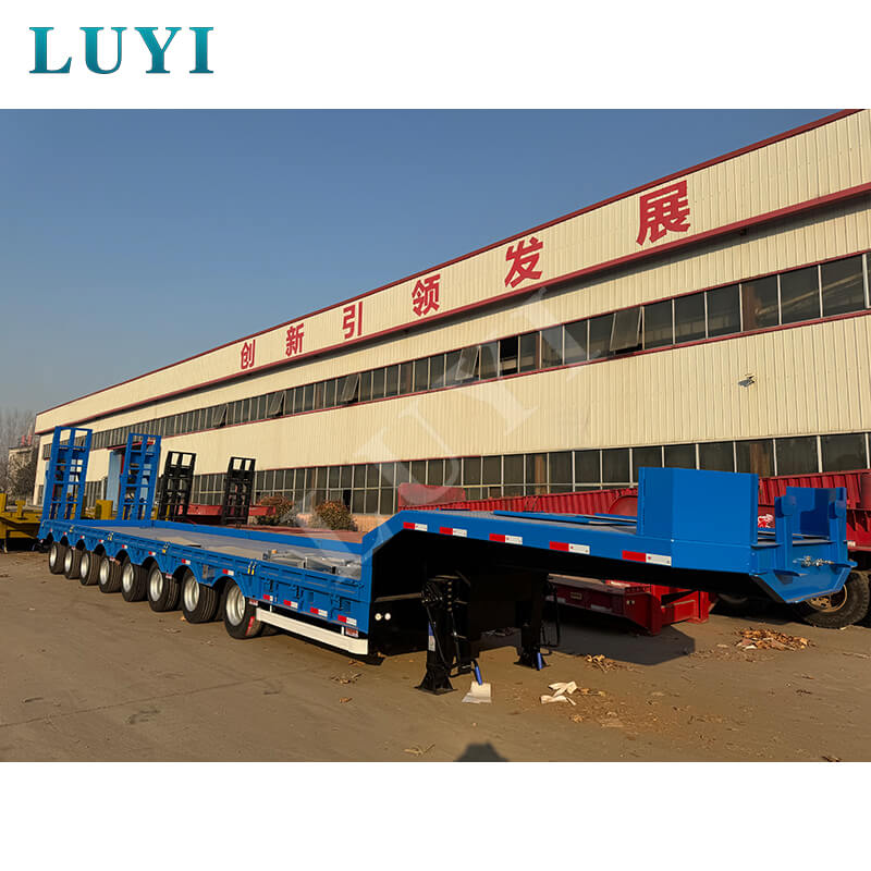 LUYI 8-Axle 150-Ton Heavy-Duty Niskopodłogowa Naczepa, pochodząca z prowincji Shandong w Chinach, to profesjonalna przyczepa do samochodów ciężarowych zaprojektowana specjalnie do transportu bardzo ciężkich ładunków.
