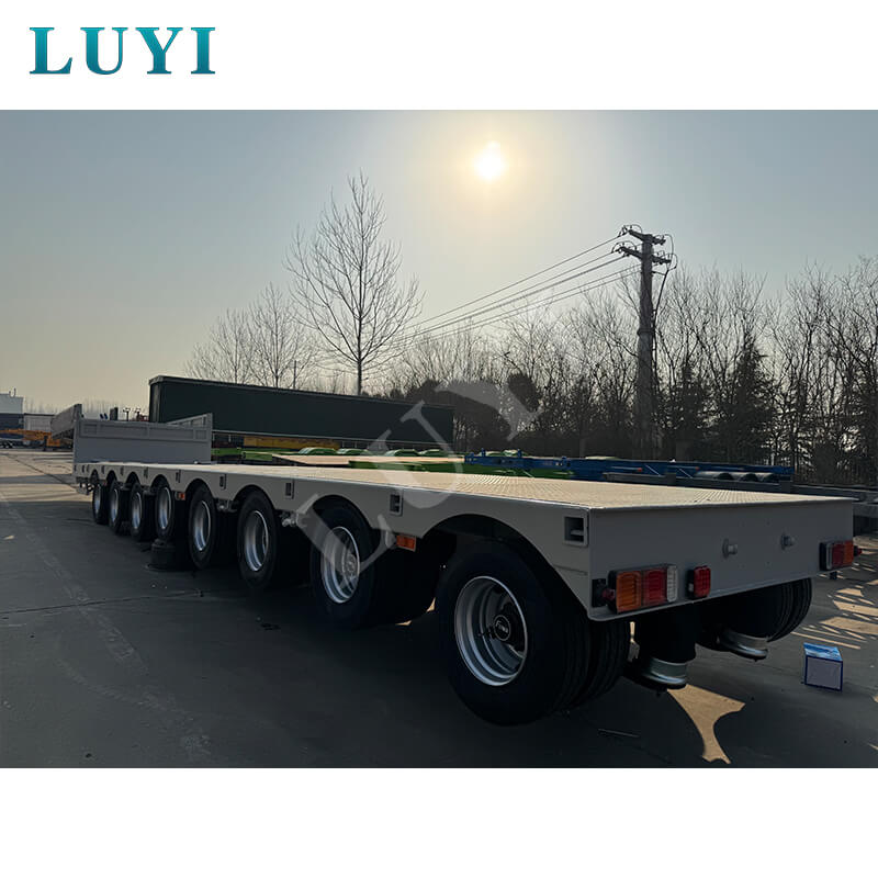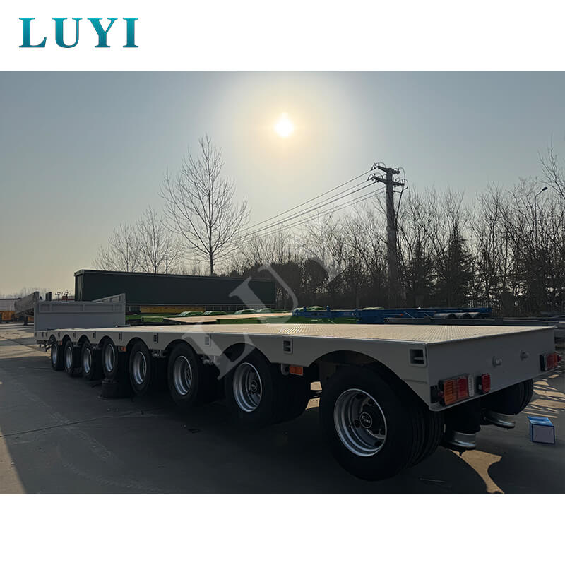 8-osiowa naczepa niskopodwoziowa LUYI 17m 80-tonowa z wysuwanym zawieszeniem pneumatycznym, wysokowydajna naczepa z Shandong w Chinach, przeznaczona do transportu ciężkiego sprzętu. Jako materiały wykorzystuje stal węglową lub aluminium, a jego konstrukcja umożliwia dopasowanie do różnych długości ładunku i maksymalną ładowność 80 ton, co pozwala sprostać wymaganiom dotyczącym dużych ładunków.