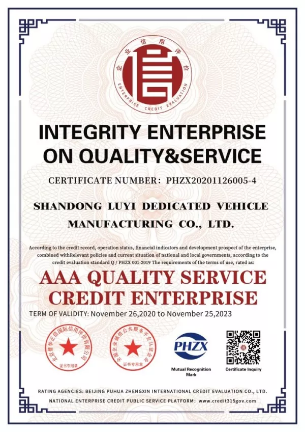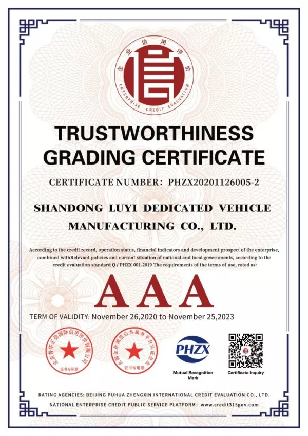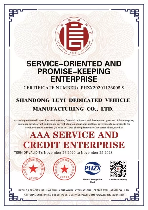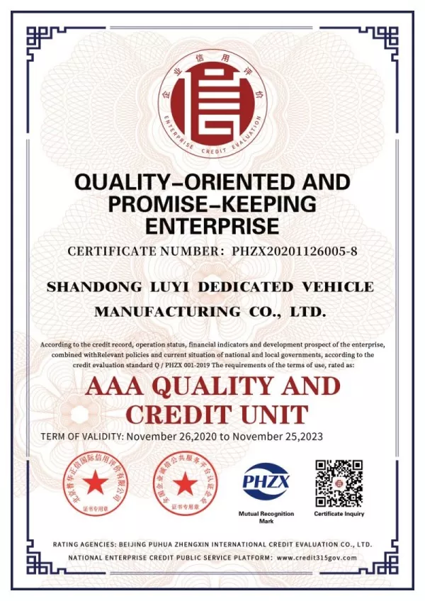 Po latach ciągłego rozwoju firma Shandong LUYI Specialty Vehicle Manufacturing Co.