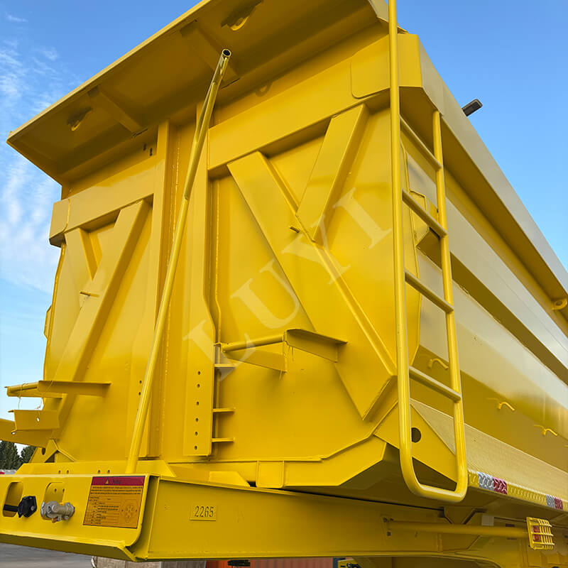 Wytrzymała hydrauliczna 3-osiowa naczepa z wywrotem tylnym typu U LUYI, pochodząca z prowincji Shandong w Chinach, to przyczepa wywrotka specjalnie zaprojektowana do materiałów takich jak piasek, żwir i zboża. Materiał można wybrać spośród stali węglowej lub stopu aluminium, co równoważy potrzebę wytrzymałości i lekkości. Wymiary nadwozia wynoszą 12500×2500×3600 mm, a maksymalne obciążenie efektywne sięga 60 ton, spełniając wymagania transportu ciężkiego.