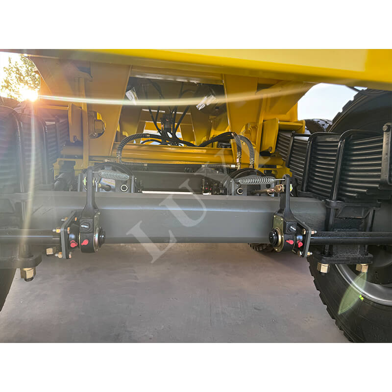 Pojazd charakteryzuje się doskonałą elastycznością. Osie można skonfigurować z osiami 2/3/4, wyposażonymi w osie marki Fuwa lub BPW. Zawieszenie może być opcjonalnie zawieszeniem mechanicznym lub pneumatycznym, dostosowującym się do różnych warunków drogowych; jest dopasowany do opon 12R22.5/12.00R20/11R22.5规格 zapewniających stabilną jazdę. Wyposażona jest w standardowe 28-tonowe podpory zapewniające bezpieczeństwo parkowania. Sworzeń królewski zapewnia opcje JOST 2 cale (50 mm) lub 3,5 cala (90 mm). Istnieje możliwość dostosowania koloru do potrzeb klienta. Konstrukcja zrzutu hydraulicznego jest wydajna i wygodna, zapewniając wysokiej jakości rozwiązanie do transportu materiałów.