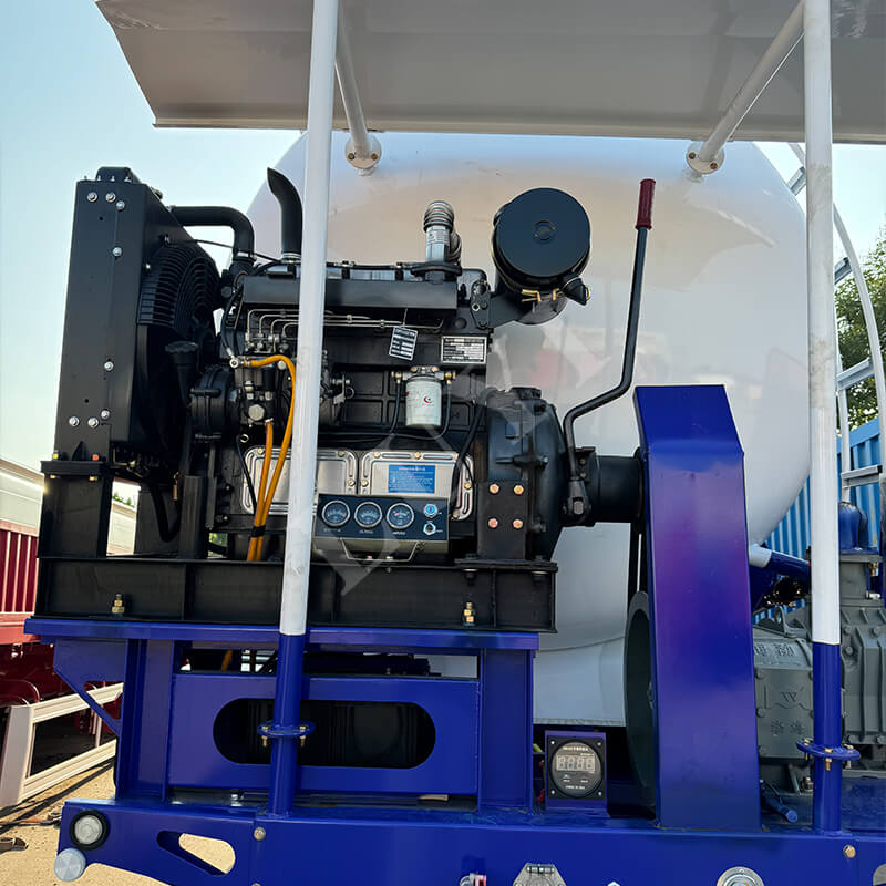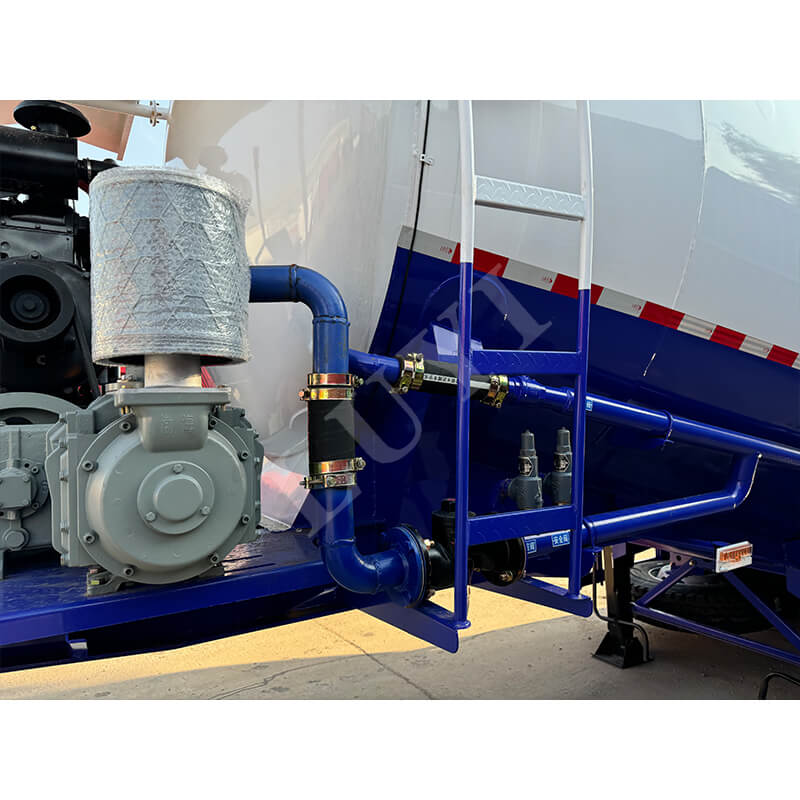 Nadaje się do potrzeb przeładunku na duże i krótkie odległości w scenariuszach budowlanych i infrastrukturalnych. Jest wyposażony w zamknięty korpus zbiornika, który może skutecznie zapobiegać wilgoci i wyciekom materiału oraz zapewniać jakość materiału. Jednocześnie wyposażony jest w pneumatyczny system transportu, który umożliwia szybki rozładunek materiałów do zbiorników magazynowych oraz poprawę efektywności załadunku i rozładunku. Ogólny projekt koncentruje się na podstawowych potrzebach transportu materiałów proszkowych, zapewniając niezawodne rozwiązanie do transportu materiałów w obszarze infrastruktury budowlanej