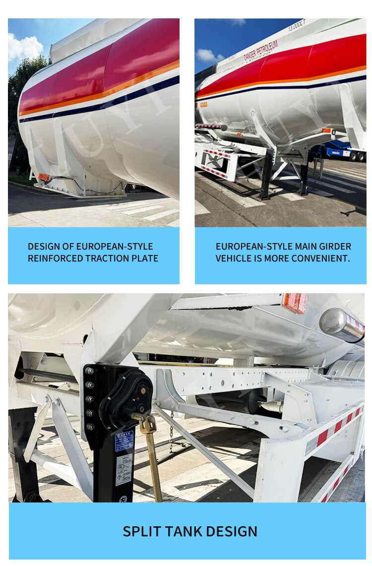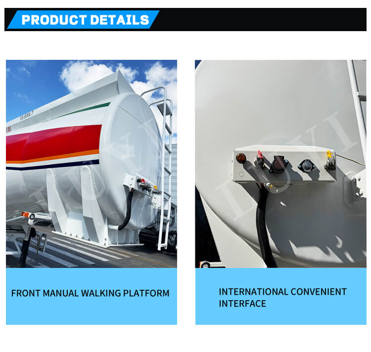 Naczepa ze zbiornikiem paliwa LUYI o pojemności 43 000 litrów, wyprodukowana w Shandong w Chinach, to zupełnie nowy, profesjonalny sprzęt do transportu ropy. Jego korpus wykonany jest ze stali o wymiarach 1085025003800mm. Konstrukcja z trzema zbiornikami umożliwia sklasyfikowany załadunek produktów naftowych, a duża pojemność 43 000 l w połączeniu z maksymalną ładownością 20 001–25 000 kg spełnia zapotrzebowanie na wydajny transport ropy.