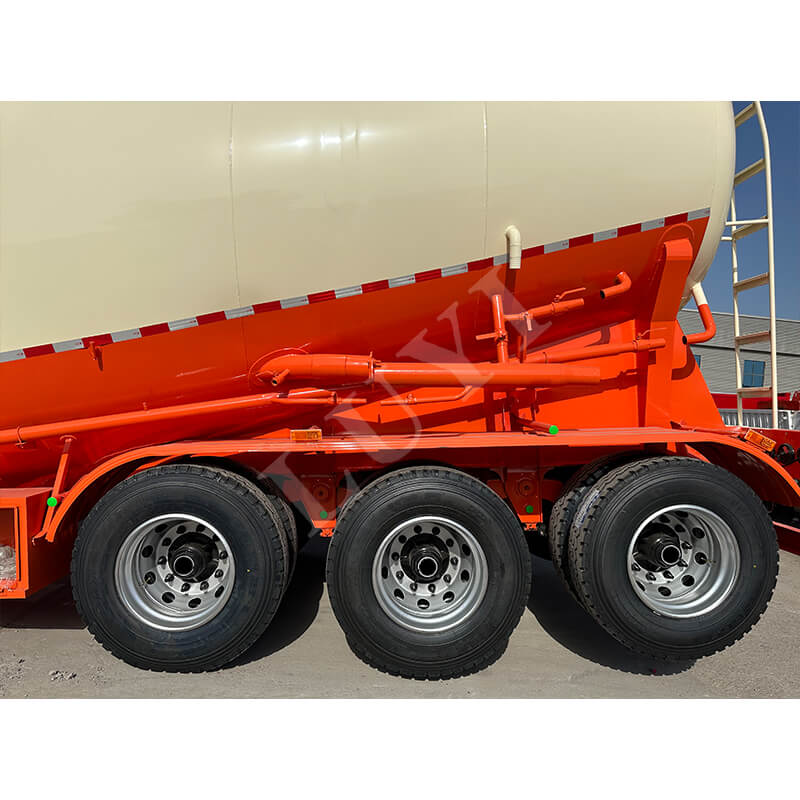 Wymiary przyczepy to 10500×2550×4000 mm. Jest wyposażony w dwie opcje zawieszenia mechanicznego/pneumatycznego, w połączeniu z 3-osiową stabilną konstrukcją i 28-tonowymi podporami o dużej wytrzymałości, aby zapewnić stabilność podczas parkowania i jazdy. Dwuprzewodowy układ hamulcowy zwiększa bezpieczeństwo. Opcje opon obejmują różne specyfikacje, takie jak 11.00r20 i 12r22.5, a sworzeń królewski jest dostępny w dwóch modelach: JOST 50 mm / 90 mm. Ponadto kolor można dostosować do potrzeb, w pełni dostosowując się do różnych scenariuszy transportu i wymagań estetycznych, co czyni go niezawodnym sprzętem do transportu cementu luzem.