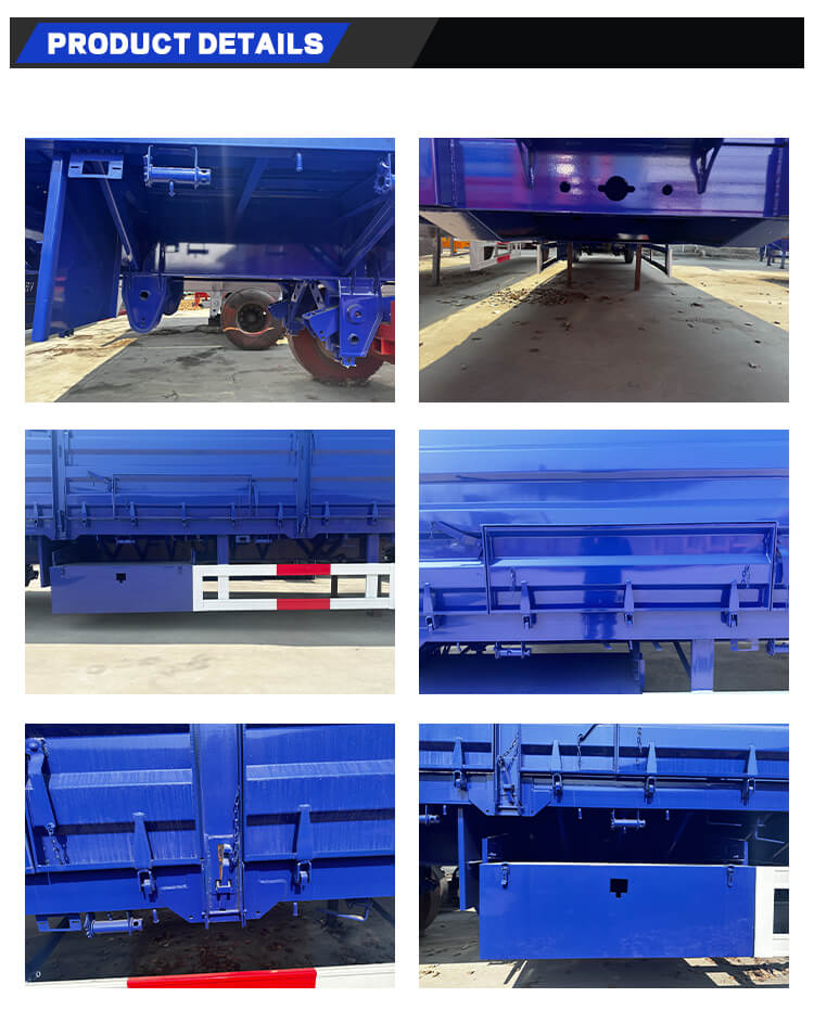 Przyczepa ma wymiary 12500×2500×1600 mm, jest wyposażona w 3 osie (po 13 ton każda) oraz mechaniczny układ zawieszenia zapewniający płynną jazdę i niezawodne nośność. Jest wyposażony w standardowe podwozie o udźwigu 28 ton, zapewniające bezpieczne operacje załadunku i rozładunku, oraz opony o specyfikacji 12R22.5/12.00R20/11R22.5 umożliwiające dostosowanie się do różnych warunków drogowych. Ponadto resory piórowe o wymiarach 90 × 13 × 10 mm zwiększają nośność, drabina mechaniczna poprawia wygodę obsługi, a kolory można dostosować do potrzeb, zapewniając elastyczne i niezawodne, dostosowane do indywidualnych potrzeb rozwiązanie dla logistyki i transportu.