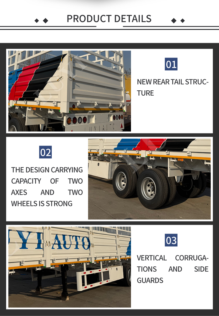 Nowo zaprojektowana 2-osiowa naczepa LUYI z wysokim płotem i ścianami bocznymi oferuje podwójną ładowność 30 i 60 ton, doskonale zaspokajając potrzeby w zakresie transportu średnich i ciężkich ładunków, takich jak materiały budowlane, sprzęt przemysłowy i produkty rolne. Wysoka konstrukcja płotu skutecznie zapobiega rozsypywaniu się ładunku podczas transportu, a konfigurowalne funkcje pozwalają dostosować wysokość ogrodzenia, materiał przewozu i antypoślizgowe podłogi tak, aby dokładnie odpowiadały Twoim wymaganiom. Ta wszechstronna, dostosowana do indywidualnych potrzeb naczepa jest teraz dostępna w sprzedaży, idealna zarówno dla firm logistycznych, jak i przewoźników towarowych.