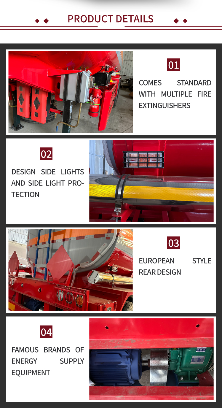 Oferuje szerokie możliwości dostosowywania, umożliwia regulacje strukturalne (konstrukcja wielokomorowa, regulowane wloty/wyloty oleju), ulepszenia materiałowe (stal węglowa Q235, stal nierdzewna zapewniająca odporność na korozję, stop aluminium zapewniający lekkość) oraz dodatki funkcjonalne (przegrody falowe, kontrola temperatury, inteligentne wskaźniki poziomu). Jako naczepa współpracuje z ciągnikami, zapewniając dużą elastyczność (oddzielny parking w celu konserwacji) i ścisłą zgodność z przepisami krajowymi, w tym dotyczącymi ciśnieniae-testy i zapobieganie wyciekom, zapewniając bezpieczny i efektywny transport oleju.