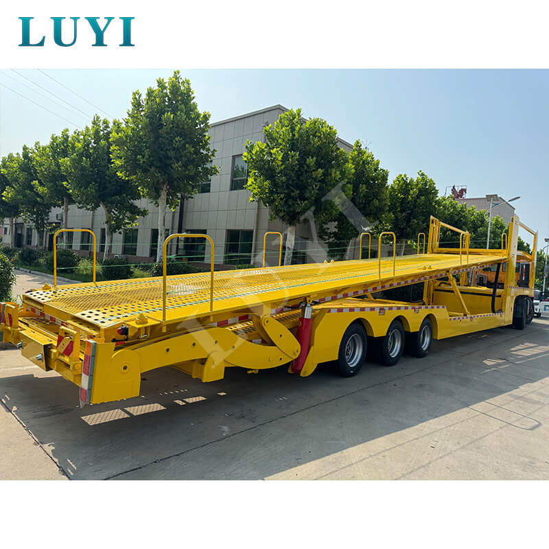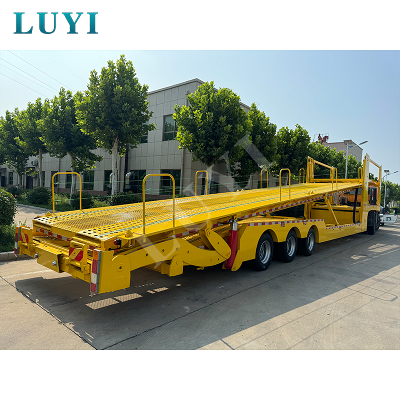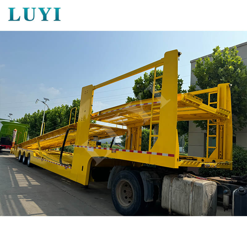 LUYI 40ft 4-osiowa, zamknięta, piętrowa naczepa do przewozu samochodów firmy Shandong Luyi Special Vehicle Manufacturing Co., Ltd. została zaprojektowana z myślą o dostawach nowych samochodów, transporcie używanych samochodów i innych scenariuszach. Całkowicie zamknięte nadwozie, o nośności 40–60 ton i 4-osiowej konstrukcji, chroni pojazdy przed uszkodzeniami zewnętrznymi. Dwupiętrowa platforma do układania w stosy zwiększa ładowność do 6-8 jednostek, a odchylana platforma ułatwia załadunek i rozładunek modeli z niskim podwoziem. Wykonany ze stali, zapewnia wysoką wytrzymałość, odporność na zużycie i opłacalność, idealny do ciężkiego transportu komercyjnego o wysokiej częstotliwości.