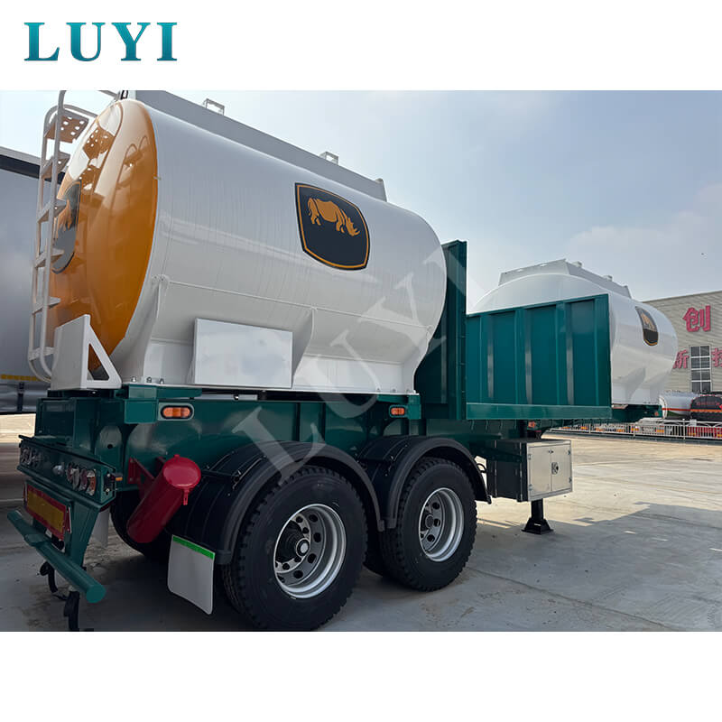 Jest to naczepa cysterna cementowa marki LUYI w kształcie litery V, wyprodukowana w Shandong w Chinach, specjalnie zaprojektowana do transportu materiałów sypkich w proszku, charakteryzująca się doskonałą nośnością i dużą praktycznością. Rozmiar przyczepy to 1250025003500MM, korpus zbiornika wykonany jest z wysokiej jakości stali o solidnej konstrukcji i dobrej szczelności. Jego maksymalna ładowność wynosi ponad 30 000 kg, można go dostosować w wersjach o udźwigu 40 i 50 ton, aby sprostać różnorodnym potrzebom w zakresie transportu ładunków masowych.