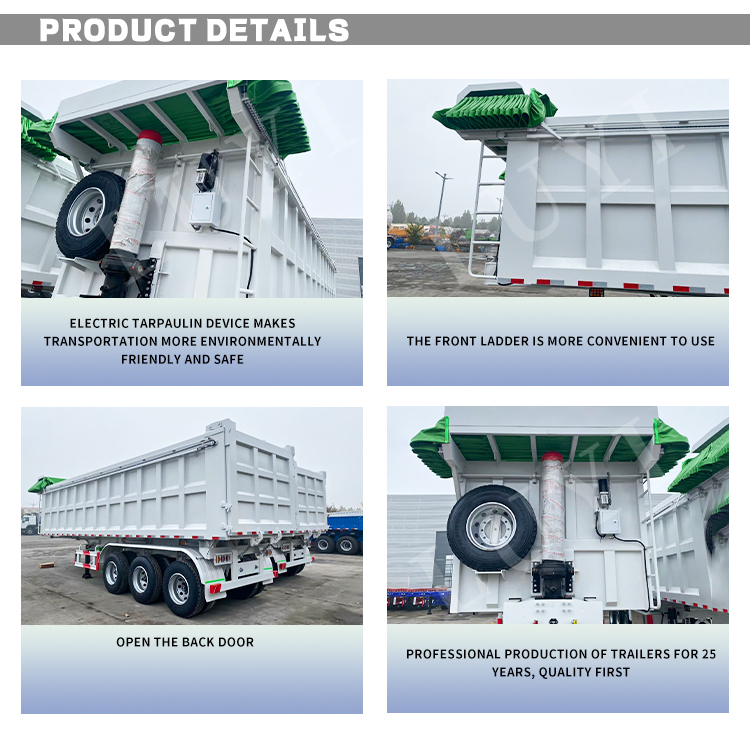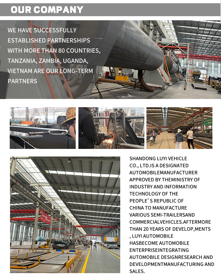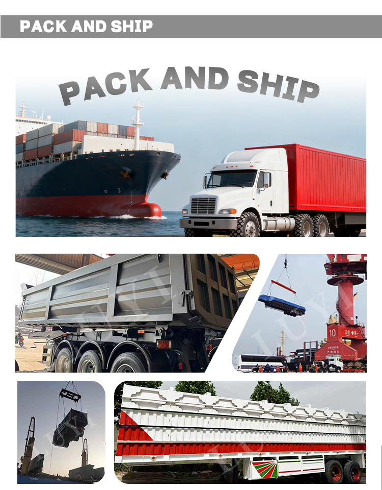 Biała 3-osiowa naczepa wywrotka z odchylanym tyłem marki LUYI, pochodząca z wysokiej jakości produkcji w Shandong w Chinach, to wydajna przyczepa do samochodów ciężarowych specjalnie zaprojektowana do transportu ciężkich ładunków. Produkt wykonany ze stali o dużej wytrzymałości, charakteryzującej się stabilną i trwałą konstrukcją. Ma wymiary 1300 mm × 2500 mm × 4000 mm i maksymalną ładowność 100 ton, z łatwością zaspokajając potrzeby transportowe różnych ciężkich towarów.