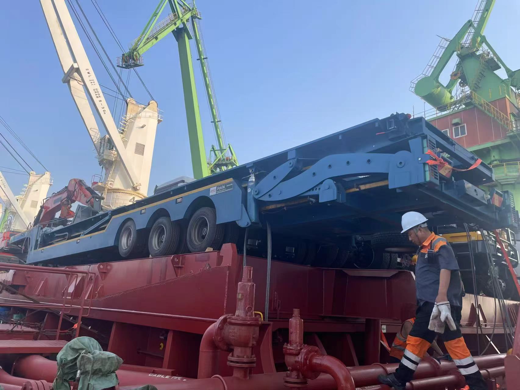 Wczesną jesienią międzynarodowy port w prowincji Shandong tętnił życiem. Dziesiątki LuyiNaczepy burtowe 3-osiowe i 4-stopowezaparkowali na terminalu w sposób uporządkowany. Po przejściu wielu procedur, takich jak kontrola celna i wzmocnienie bezpieczeństwa, naczepy z platformą zostały powoli podniesione do ładowni oceanicznego frachtowca za pomocą profesjonalnego sprzętu podnoszącego. Ta operacja załadunku stanowiła oficjalne rozpoczęcie transgranicznej współpracy transportowej pomiędzy marką Luyi a klientami z Kazachstanu. 3-osiowe i 4-stopowe naczepy z platformą Luyi będą przekraczać granice państw, dostarczając rozwiązania do transportu ciężkich ładunków dla sektora transportu inżynieryjnego w Kazachstanie.