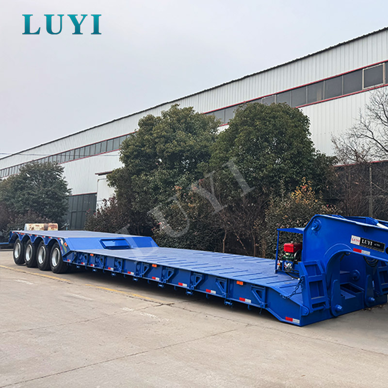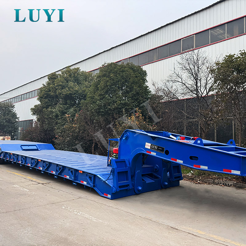 4-osiowa naczepa niskopodwoziowa LUYI typu "gęsia szyja" pochodząca z Shandong w Chinach to wysokiej jakości naczepa specjalnie zaprojektowana do transportu ciężkich ładunków. Zbudowany ze stali premium, ma masę własną wynoszącą zaledwie 6350 kg, nośność znamionową 50 000 kg i maksymalną ładowność w zakresie od 30 ton do 200 ton, co zapewnia wyjątkową nośność.