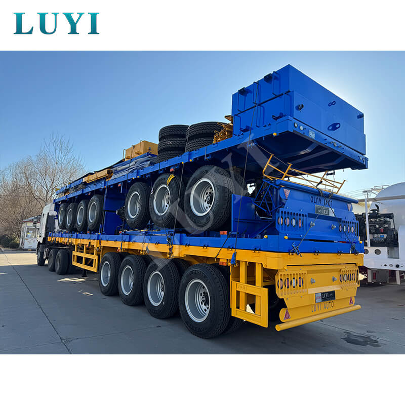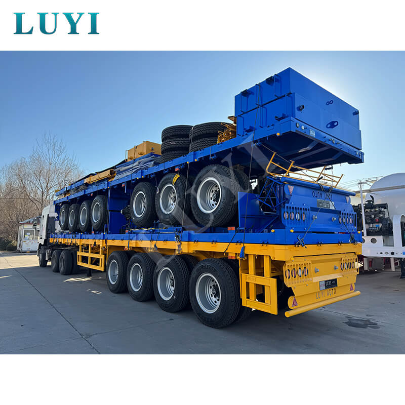 Pochodząca z Chin 3-osiowa naczepa kontenerowa LUCKIN o długości 40 stóp została specjalnie zaprojektowana do holowania samochodów ciężarowych, co czyni ją idealnym wyborem do transportu kontenerów. Wykonany ze stali o wysokiej wytrzymałości, ma wymiary 12500 mm × 2500 mm × 1500 mm i charakteryzuje się solidną i trwałą konstrukcją.